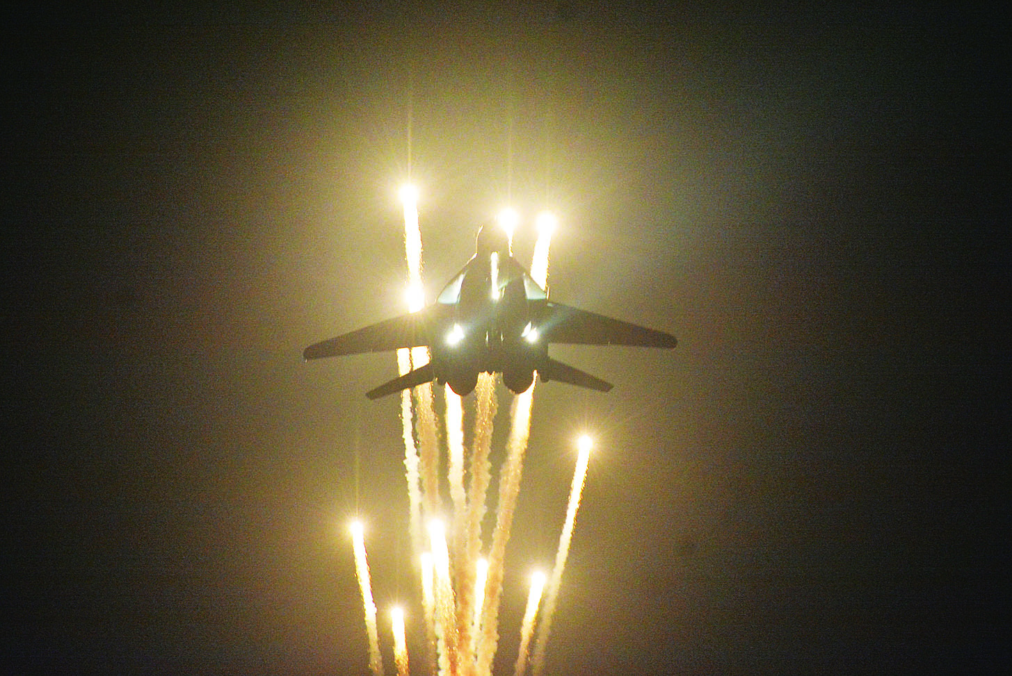 ထိုသို့ ချီတက်အလေးပြုချိန်တွင် တပ်မတော်(လေ)မှ MiG-29 ဘက်စုံသုံး တိုက်လေယာဉ် ၁ စီးက ရှုရပ်ရှေ့တည့်တည့်မှ မီးကျည်များ ထုတ်လွှတ်၍လည်းကောင်း၊ MTX - 1 A လေယာဉ်တစ်စီးနှင့် PT-6 လေယာဉ် ၂ စီး တို့က ရှုရပ်၏ရှေ့တည့်တည့်သို့ Trail Formation ပုံစံဖြင့်လည်းကောင်း၊ H-125 ရဟတ်ယာဉ် ၂ စီးက Trail Formation ပုံစံဖြင့်လည်းကောင်း၊ Bell-206 ရဟတ်ယာဉ် ၁ စီးက ရှုရပ်၏လက်ဝဲဘက်မှ လက်ယာဘက်သို့ ပျံသန်း၍လည်းကောင်း၊ Eurocopter ၂ စီးက Echelon Formation ပုံစံဖြင့်လည်းကောင်း၊ Bell-206 ရဟတ်ယာဉ် ၁ စီးက ရှုရပ်၏ ရှေ့တည့်တည့်မှ ဒုတိယအကြိမ် ပျံသန်း၍လည်းကောင်း၊ Eurocopter ၂ စီးက Echelon Formation ပုံစံဖြင့် ဒုတိယအကြိမ်ပျံသန်း၍လည်းကောင်း၊ BEECH 1900D အမျိုး အစား သယ်ယူပို့ဆောင်ရေးလေယာဉ် ၁ စီးက ရှုရပ်၏ အရှေ့ညာ ၄၅ ဒီဂရီ မြင်ကွင်းမှ ၀၂၅ ဒီဂရီလမ်းကြောင်းအတိုင်း ပျံသန်း၍လည်းကောင်း၊ ATR 72 သယ်ယူပို့ဆောင်ရေး လေယာဉ်တစ်စီးကရှုရပ်၏ ရှေ့တည့်တည့် တောင်မှမြောက်သို့ ပျံသန်း၍လည်းကောင်း၊ K-8 W တိုက်ခိုက်ရေးလေယာဉ် ၂ စီးက ရှုရပ်၏ အရှေ့ညာ ၄၅ ဒီဂရီ မြင်ကွင်းမှ ၀၂၅ ဒီဂရီလမ်းကြောင်းအတိုင်း Echelon Formation ပုံစံဖြင့်လည်းကောင်း၊ Su-30 SME စတုတ္ထမျိုးဆက်လွန်ဘက်စုံသုံး အကြီးစားတိုက်လေယာဉ် ၂ စီးက Echelon Formation ပုံစံဖြင့် ၂ ကြိမ်ပျံသန်း၍ ရှုရပ်ရှေ့တည့်တည့်မှ မီးကျည်များထုတ်လွှတ်၍လည်းကောင်း အသီးသီးသရုပ်ပြပျံသန်းကြပြီး နိုင်ငံတော်စီမံအုပ်ချုပ်ရေးကောင်စီဥက္ကဋ္ဌ တပ်မတော်ကာကွယ်ရေးဦးစီးချုပ်အား အလေးပြုကြသည်။