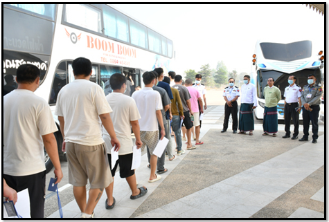 မြန်မာ - တရုတ် - ထိုင်း သုံးနိုင်ငံအကြား သုံးပွင့်ဆိုင်ပူးပေါင်းဆောင်ရွက်မှုပုံစံ (Trilateral Cooperation) ဖြင့် အွန်လိုင်းအသုံးပြုလိမ်လည်မှု (Online Scam) နှင့် အွန်လိုင်းလောင်းကစားမှု (Online Gambling) လုပ်ဆောင်နေကြသူများ၊ ပါဝင်ပတ်သက်သူများနှင့် နောက်ကွယ်မှကြိုးကိုင်သော ပြည်ပနိုင်ငံသားများကို ပြတ်ပြတ်သားသား စုံစမ်းဖော်ထုတ်တိုက်ဖျက်လျက်ရှိရာ ယနေ့တွင် အဆိုပါလုပ်ငန်းများ၌ ဆက်စပ်ပါဝင်ခဲ့ကြသည့်  တရုတ်နိုင်ငံသား ၃၆၅ ဦးကို မြန်မာ - ထိုင်း အမှတ်(၂) ချစ်ကြည်ရေးတံတားမှတစ်ဆင့် သက်ဆိုင်ရာနိုင်ငံသို့ လူသားချင်းစာနာထောက်ထားမှုနှင့် နိုင်ငံအချင်းချင်း ချစ်ကြည်ရင်းနှီးမှုတို့ကို ရှေးရှု၍ ဥပဒေလုပ်ထုံးလုပ်နည်းများနှင့်အညီ ထပ်မံပြည်နှင်လွှဲပြောင်းပေးသည်။