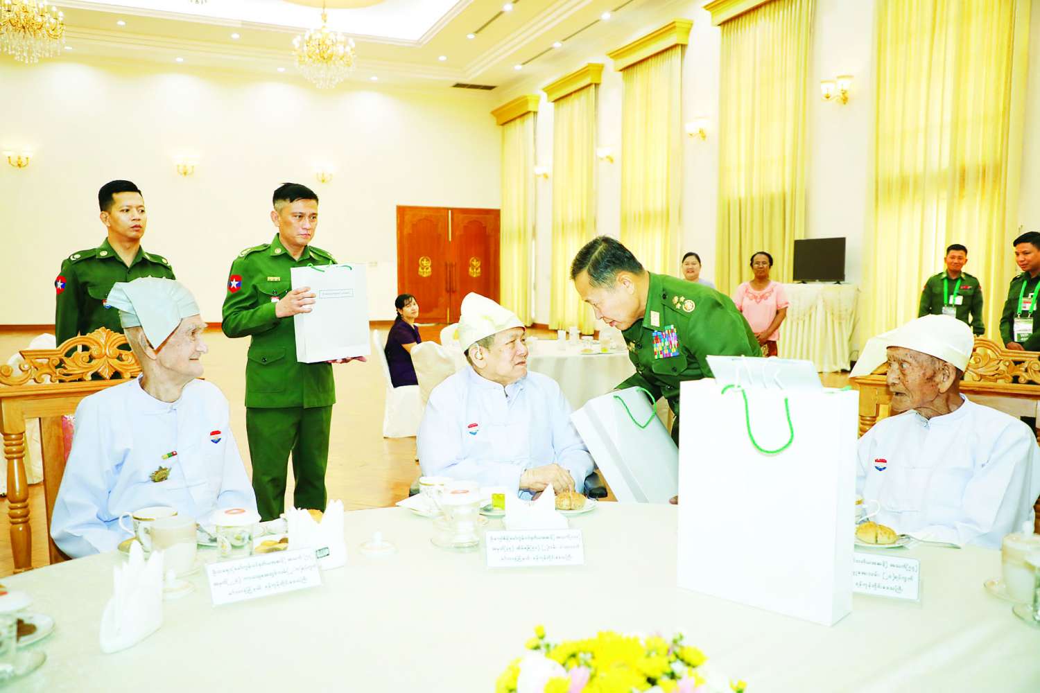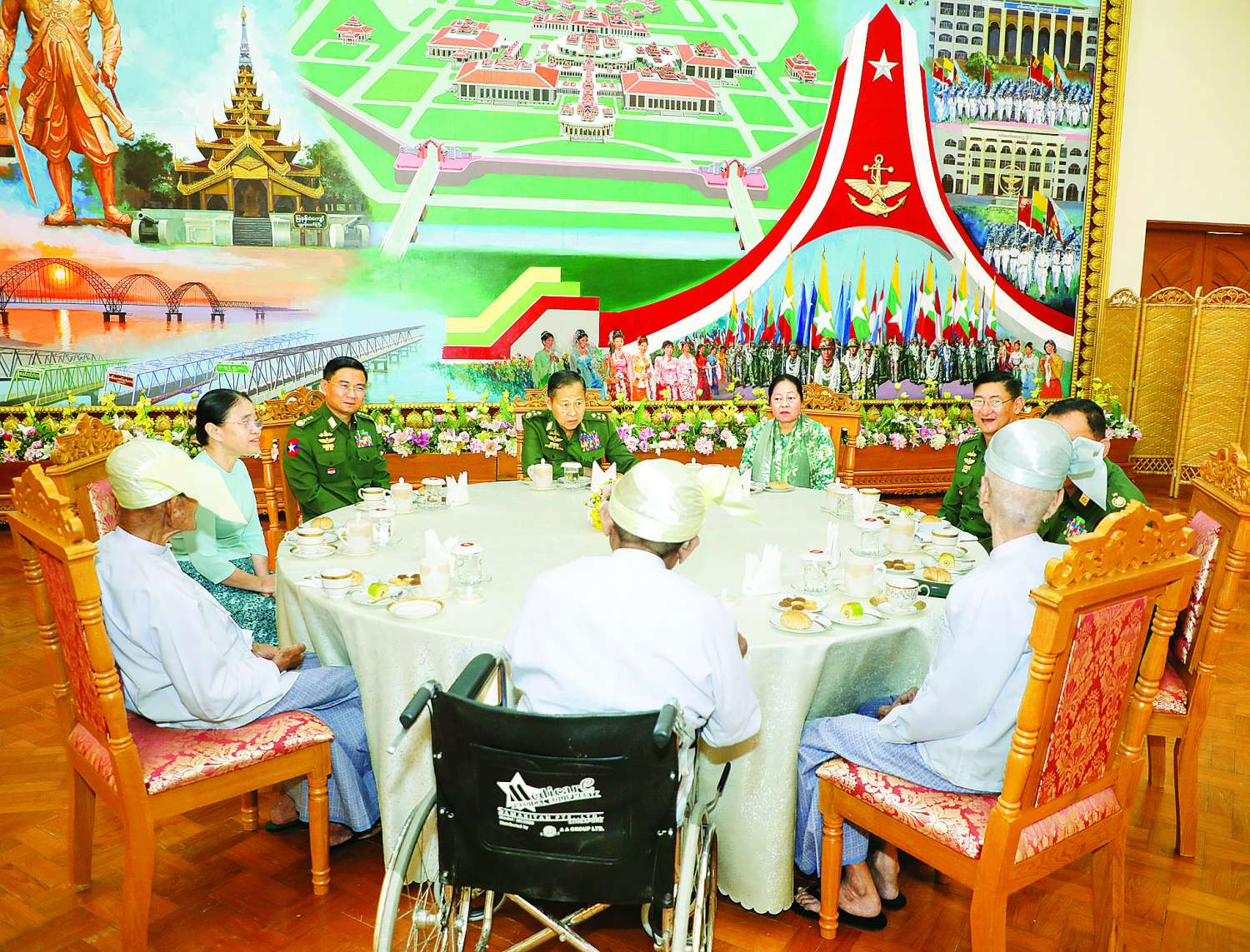 ထိုသို့တွေ့ဆုံစဉ် နိုင်ငံတော်စီမံအုပ်ချုပ်ရေးကောင်စီဒုတိယဥက္ကဋ္ဌ ဒုတိယတပ်မတော်ကာကွယ်ရေးဦးစီးချုပ် ကာကွယ်ရေးဦးစီးချုပ်(ကြည်း)နှင့်ဇနီး၊ ညှိနှိုင်းကွပ်ကဲရေးမှူး(ကြည်း၊ ရေ၊ လေ)နှင့်ဇနီး၊ ကာကွယ်ရေးဦးစီးချုပ်ရုံးမှ တပ်မတော်အရာရှိကြီးများက လွတ်လပ်ရေးမော်ကွန်းဝင်ပုဂ္ဂိုလ်များ၏ ကျန်းမာရေးအခြေအနေများအား တစ်ဦးချင်းမေးမြန်းအားပေးစကားပြောကြားပြီး လိုအပ်ချက်များကို ဖြည့်ဆည်းဆောင်ရွက်ပေးကာ တစ်ဦးချင်းဂါရဝပြုချီးမြှင့်ငွေနှင့် အားဖြည့်ငှက်သိုက်များကို ကိုယ်တိုင်ကိုယ်ကျပေးအပ်သည်။