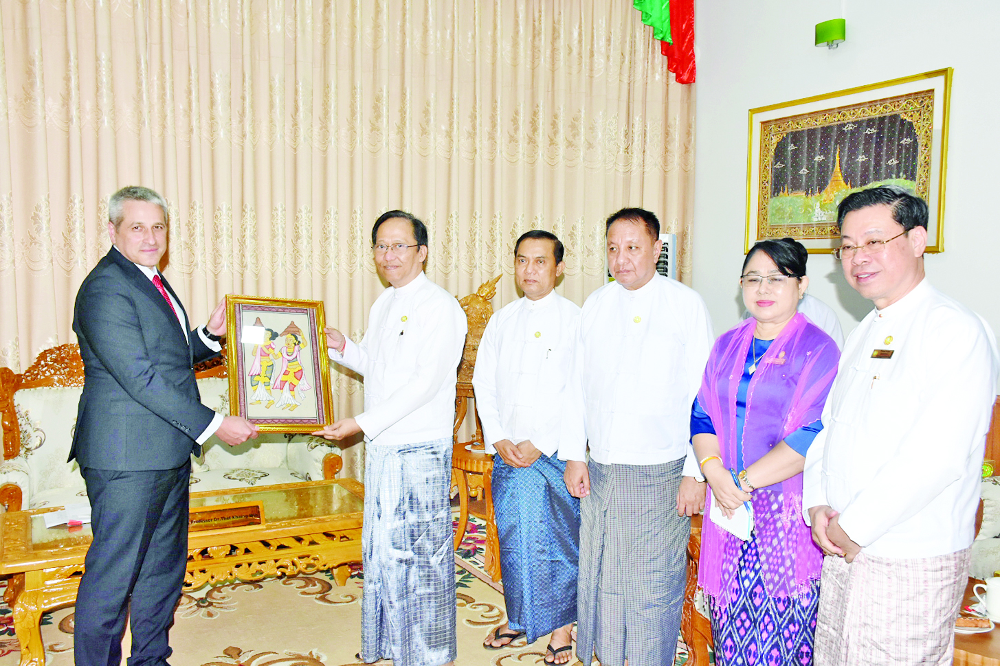 ကျန်းမာရေးဝန်ကြီးဌာန ပြည်ထောင်စုဝန်ကြီး ဒေါက်တာသက်ခိုင်ဝင်းသည် ဗီယက်နမ်နိုင်ငံ ဟနွိုင်းမြို့ အခြေစိုက် ဘယ်လာရုစ်နိုင်ငံသံအမတ်ကြီး မစ္စတာ အူလာဇမီယာဘာရာဗီကူ ခေါင်းဆောင်သော ကိုယ်စားလှယ်အဖွဲ့အား ယနေ့မွန်းလွဲပိုင်းတွင် ကျန်းမာရေးဝန်ကြီးဌာန ပြည်ထောင်စုဝန်ကြီး ဧည့်ခန်းမ၌လက်ခံတွေ့ဆုံသည်။
