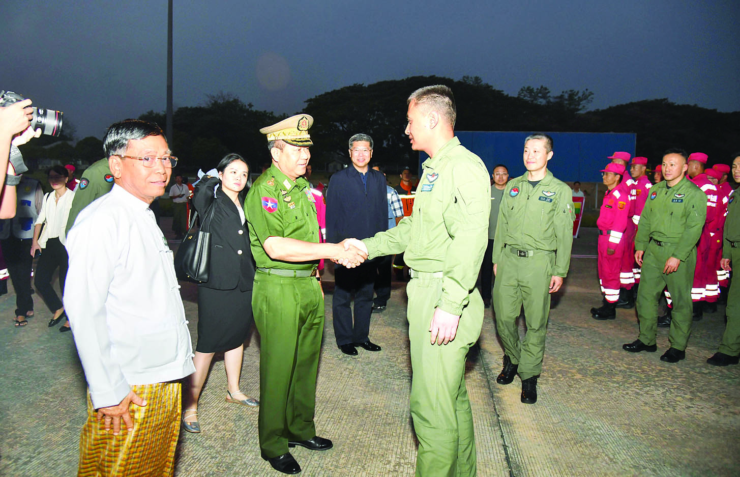 မြန်မာနိုင်ငံသို့ ရောက်ရှိနေကြသော တရုတ်နိုင်ငံမှ အရေးပေါ်ရှာဖွေကယ်ဆယ်ရေးအဖွဲ့များသည် ၎င်းတို့လုပ်ငန်းတာဝန်များ ပြီးဆုံးသဖြင့် တရုတ်နိုင်ငံမှ Y-20 အမျိုးအစားလေယာဉ်လေးစင်းဖြင့် နေပြည်တော်ရှိ တပ်မတော်လေဆိပ်မှ တရုတ်နိုင်ငံသို့ ယနေ့နံနက်ပိုင်းတွင် ပြန်လည်ထွက်ခွာကြသည်။