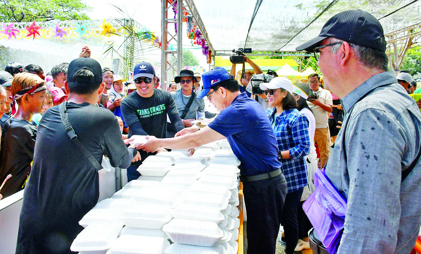 ဦးစွာ ပြည်ထောင်စုဝန်ကြီးသည် နေပြည်တော်လမ်းလျှောက် သင်္ကြန်ဧရိယာအတွင်း မြန်မာမှု၊ မြန်မာ့ဟန်၊ မြန်မာ့ရိုးရာ ယဉ်ကျေးမှုဓလေ့စရိုက်နှင့်အညီ ယဉ်ကျေးသိမ်မွေ့စွာ ပါဝင်ဆင်နွှဲနေသည့် ပြည်သူများနှင့် ဝန်ထမ်းများ စားသုံးနိုင်ရန် ခေါက်ဆွဲဘူးများနှင့် နှစ်ဟောင်းမှ အဆိုးအညံ့တို့ နှစ်သစ်တွင် တစ်ဦးနှင့်တစ်ဦး ရေပက်ကစားခြင်းဖြင့် သန့်စင်နိုင်ရန် ရည်ရွယ်၍ ရေဖလားများ ဝေငှပေးသည်။