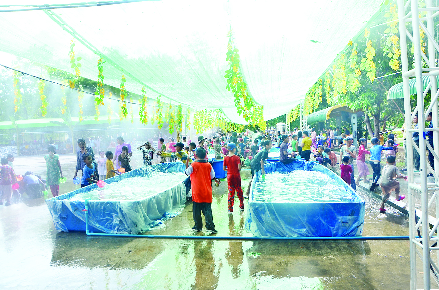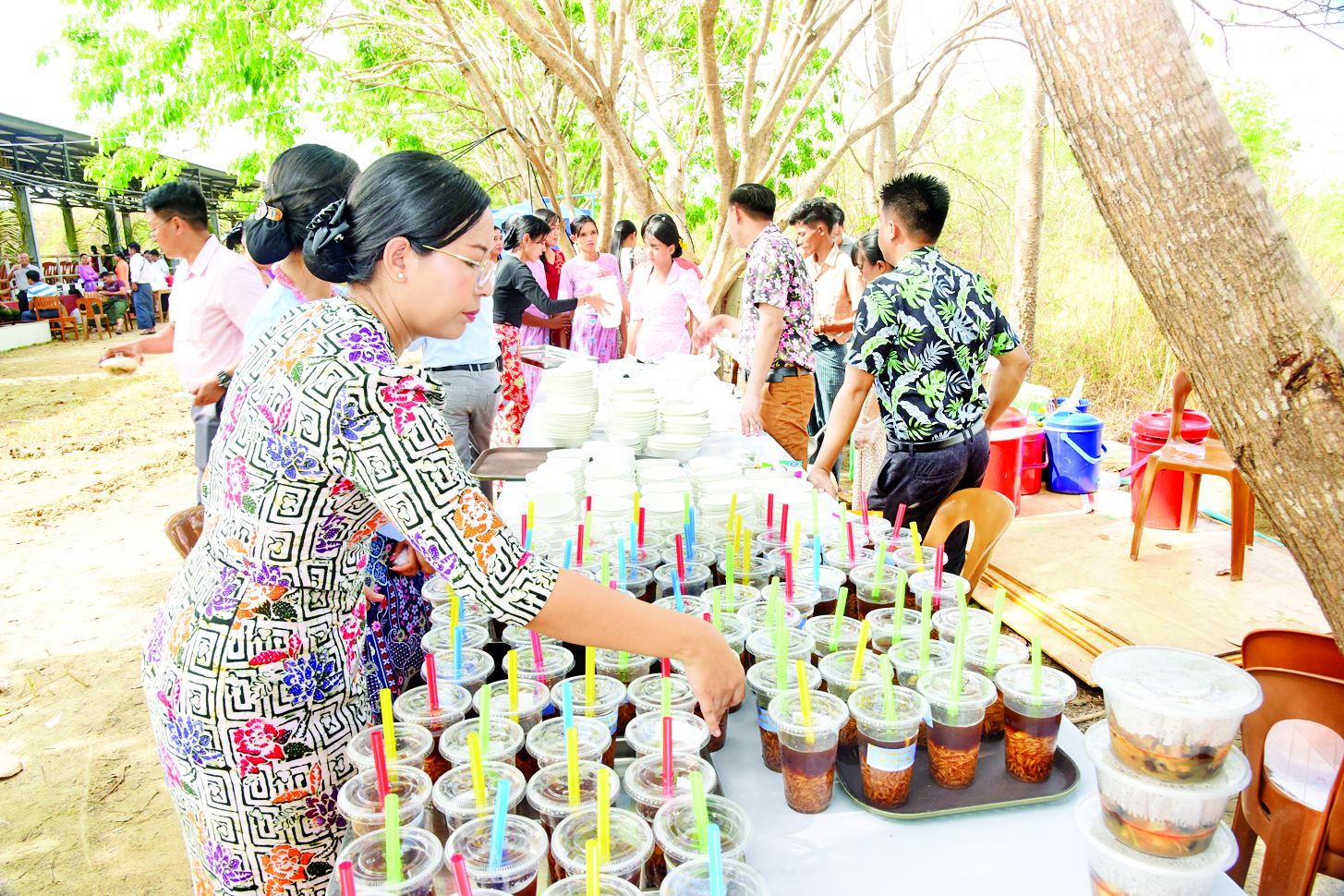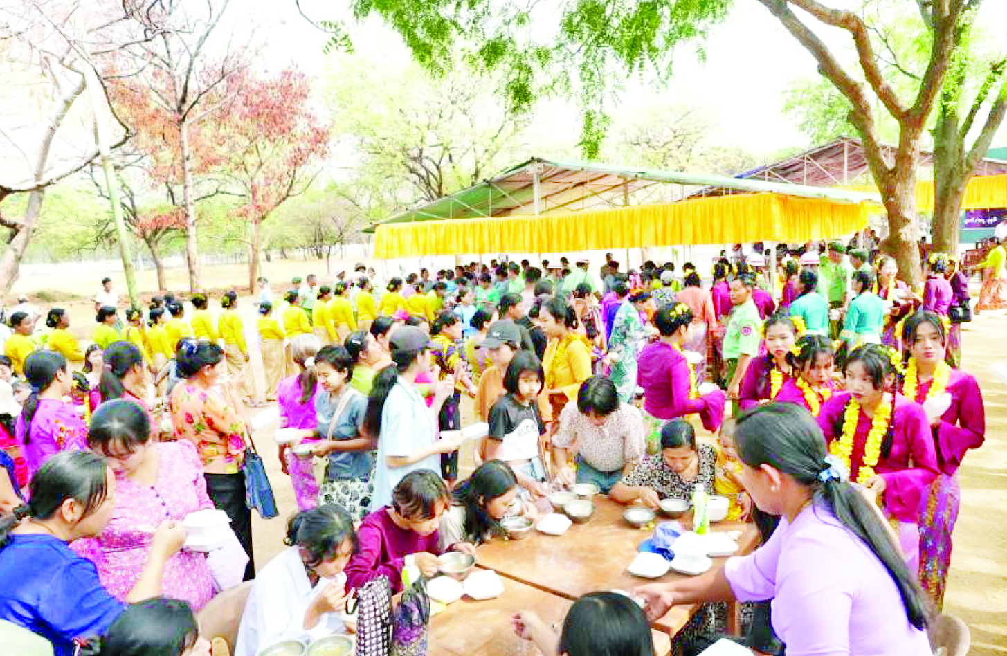 ထိုသို့ မြန်မာ့ရိုးရာ နှစ်သစ်ကူးအတာသင်္ကြန်ကျင်းပချိန်တွင် ပါဝင်ဆင်နွှဲကြသူများကို မြန်မာ့ရိုးရာအတာသင်္ကြန် စတုဒိသာများဖြင့် ဧည့်ခံကျွေးမွေးခြင်းများ၊ သနပ်ခါးသင်္ကြန်ဆင်နွှဲခြင်း၊ မြန်မာ့ရိုးရာ အစဉ်အလာနှင့်အညီ သက်ကြီးဘိုးဘွားများအား ကုသိုလ်ပြုပူဇော် ကန်တော့ကြခြင်း၊ အန္တရာယ်ကင်းပရိတ်ရွတ်ဖတ်ခြင်း၊ ဇီဝိတဒါနငါးလွှတ်ခြင်း၊ ငှက်လွှတ်ခြင်းစသည်တို့ကို ပြုလုပ်၍ နှစ်ဦးကုသိုလ်ယူခဲ့ကြကြောင်း သိရသည်။