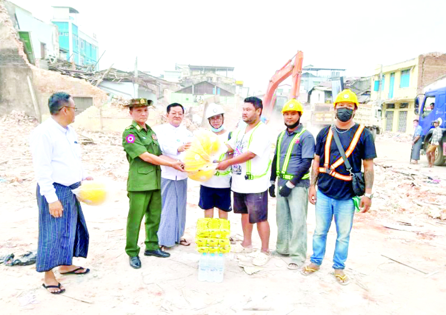 အထက်ပါပေးပို့လှူဒါန်းသောပစ္စည်းများကို ပြည်ထောင်စုနယ်မြေ နေပြည်တော်အတွင်း နေပြည်တော်ကောင်စီ၏ အစီအစဉ်ဖြင့်လည်းကောင်း၊ နေပြည်တော်ရှိ ဝန်ထမ်းမိသားစုများကို သက်ဆိုင်ရာဝန်ကြီးဌာနများ၏ အစီအစဉ်ဖြင့်လည်းကောင်း၊ ရန်ကုန်နှင့် နေပြည်တော်တို့မှ တစ်ဆင့် မန္တလေးတိုင်းဒေသကြီးသို့ မော်တော်ယာဉ် ၄၈ စီးဖြင့် ပေးပို့ခဲ့သည့် လှူဒါန်းပစ္စည်းများနှင့် မန္တလေး(တံတားဦး) အပြည်ပြည်ဆိုင်ရာ လေဆိပ်သို့ရောက်ရှိသည့် ပစ္စည်းများကို မန္တလေးတိုင်းဒေသကြီး အစိုးရအဖွဲ့အစီအစဉ်ဖြင့်လည်းကောင်း၊ စစ်ကိုင်းတိုင်းဒေသကြီးသို့ မော်တော်ယာဉ် ၂၁ စီးဖြင့် ပေးပို့ထားသည့် လှူဒါန်းပစ္စည်းများကို စစ်ကိုင်း တိုင်းဒေသကြီးအစိုးရအဖွဲ့အစီအစဉ်ဖြင့်လည်းကောင်း၊ ရှမ်းပြည်နယ် (တောင်ပိုင်း)သို့ မော်တော်ယာဉ်ငါးစီးဖြင့် ပေးပို့ခဲ့သည့် လှူဒါန်းပစ္စည်းများကို ရှမ်းပြည်နယ်အစိုးရအဖွဲ့အစီအစဉ်ဖြင့်လည်းကောင်း ခွဲဝေထောက်ပံ့ဆောင်ရွက်လျက်ရှိသည်။ လှူဒါန်းရရှိသည့်ပစ္စည်း များအနက် ဆေးနှင့်ဆေးပစ္စည်းများ၊ ခွဲစိတ်ခန်းသုံးပစ္စည်းများနှင့် ဆေးရုံသုံးပစ္စည်းများကို ကျန်းမာရေးဝန်ကြီးဌာနသို့ လွှဲပြောင်းပေးအပ်ကာ ဒဏ်ရာရရှိသည့်ပြည်သူများအား ကုသရာတွင် အသုံးပြုလျက်ရှိ သည်။