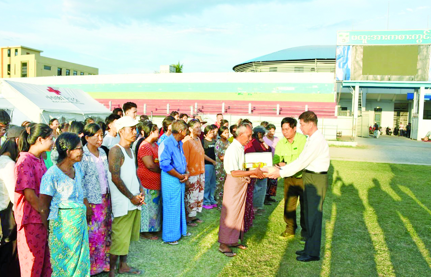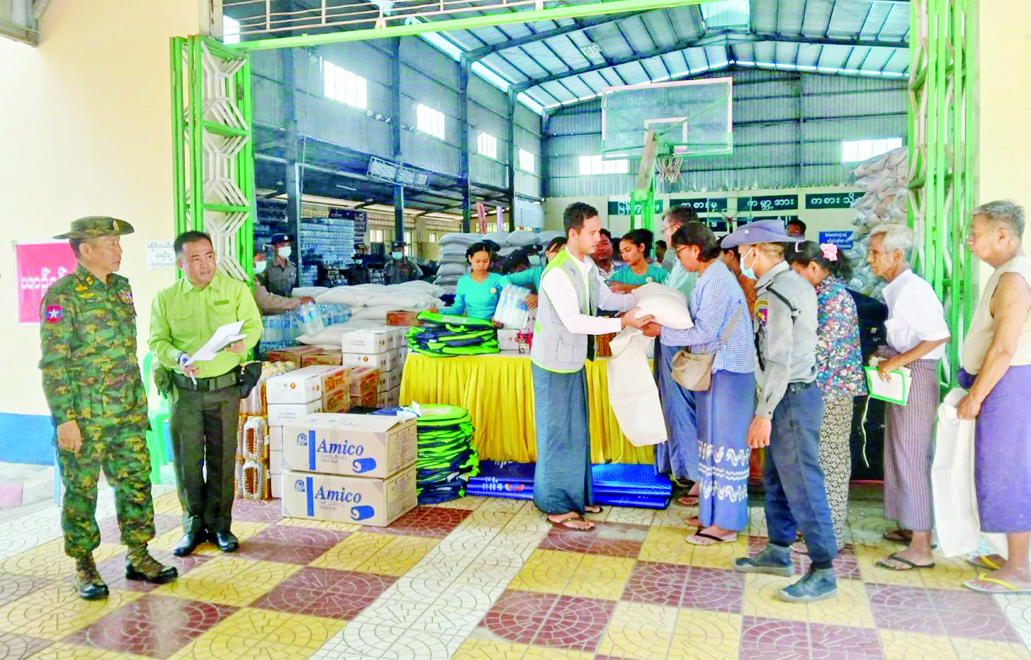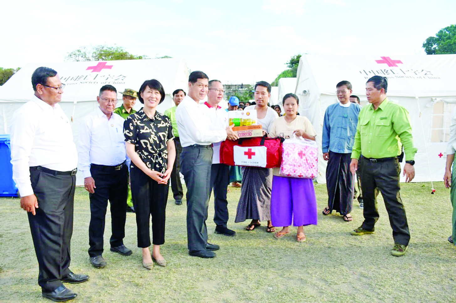 မတ် ၃၀ ရက်မှ ဧပြီ ၁၃ ရက်အထိ ငလျင်ဘေးသင့်ပြည်သူများအတွက် အိန္ဒိယနိုင်ငံ AHA Center ၊ တရုတ်ပြည်သူ့သမ္မတနိုင်ငံ၊ ဗီယက်နမ်နိုင်ငံ၊ ဘင်္ဂလားဒေ့ရှ်နိုင်ငံ၊ ထိုင်းနိုင်ငံ၊ အင်ဒိုနီးရှားနိုင်ငံ၊ ပါကစ္စတန်နိုင်ငံ၊ ရုရှား ဖက်ဒရေးရှင်းနိုင်ငံ၊ ဘယ်လာရုဇ်နိုင်ငံ၊ လာအိုနိုင်ငံ၊ Singapore Red Cross Society၊ နီပေါနိုင်ငံ၊ UAE နှင့် ဘရူနိုင်းနိုင်ငံတို့မှ ပေးပို့လှူဒါန်း သည့်ပစ္စည်းများကို ငလျင်ဘေးသင့်ဒေသများသို့ အချိန်မဆိုင်းဘဲ ဆက်လက်ဖြန့်ခွဲဆောင်ရွက်လျက်ရှိသည်။ နိုင်ငံတကာက ကူညီထောက်ပံ့သည့်ပစ္စည်းများမှာ မိုးကာတဲ၊ တာပေါ်လင်၊ Hygiene Kit ၊ Kitchen Set၊ မီးစက်၊ Sleeping Bags၊ စားသောက်ကုန်ပစ္စည်း၊ လူသုံးကုန်ပစ္စည်း၊ အိမ်သုံးကုန်ပစ္စည်း၊ လျှပ်စစ်ပစ္စည်း၊ ဆေးနှင့်ဆေးပစ္စည်း၊ ခွဲစိတ်ခန်းသုံးပစ္စည်းတို့ဖြစ်သည်။