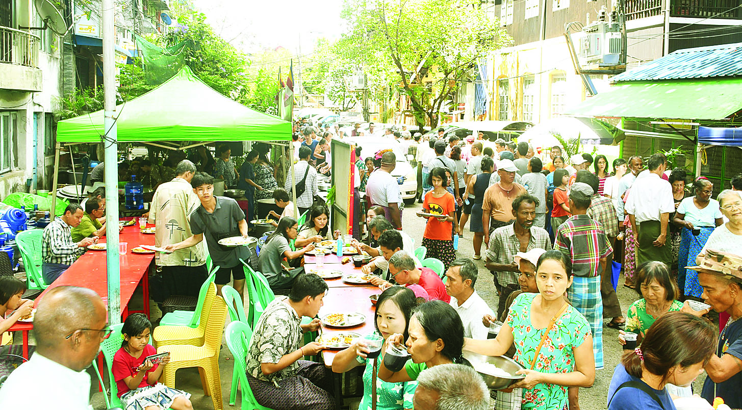 ဆက်လက်၍ တိုင်းဒေသကြီးဝန်ကြီးချုပ်၊ ဇနီးနှင့် အဖွဲ့ဝင်များ၊ တာဝန်ရှိသူများသည် ရန်ကုန်မြို့တော်စည်ပင်သာယာရေးကော်မတီ ဝန်ထမ်းမိသားစုများ စုပေါင်း၍ စတုဒိသာကျွေးမွေးလှူဒါန်းပွဲနှင့် ရန်ကုန်လမ်းလျှောက်သင်္ကြန်ပွဲတော်သို့ တက်ရောက်အားပေးကြပြီး မြန်မာ့သနပ်ခါးဖြင့် ပွဲတော်လာကြသူများနှင့် ဝန်ထမ်းမိသားစုများအား လိမ်းခြယ်ပေးပြီး သပြေခက်ဖြင့် ရေပက်ဖျန်းပေးကြသည်။
