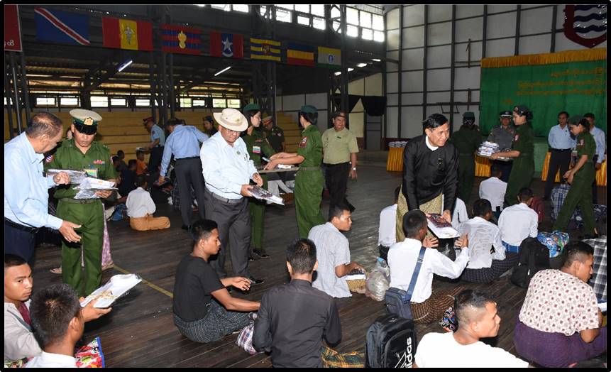 ဦးစွာ တိုင်းဒေသကြီးဝန်ကြီးချုပ်နှင့်တိုင်းမှူးတို့က ပြည်သူ့စစ်မှုထမ်း သင်တန်းအမှတ်စဉ်(၁၂)သို့ တက်ရောက်မည့် နိုင်ငံ့သားကောင်းရတနာများအတွက် အဝတ်အထည်များပေးအပ်သည်။ ထို့နောက် တိုင်းဒေသကြီးဝန်ကြီးချုပ်၊ တိုင်းမှူးနှင့် တာဝန်ရှိသူများက နိုင်ငံ့သားကောင်းရတနာများအား လိုက်လံနှုတ်ဆက် အားပေးစကားပြောကြားပြီး လိုအပ်သည်များ ပေါင်းစပ်ညှိနှိုင်းဆောင်ရွက် ပေးခဲ့ကြောင်းသတင်းရရှိသည်။