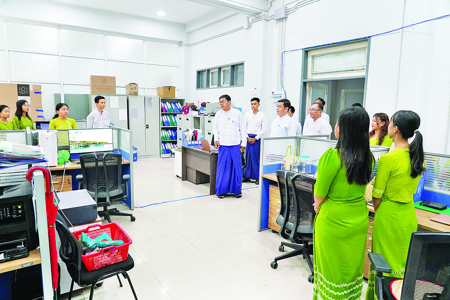 နိုင်ငံတော်ဝန်ကြီးချုပ်ကလည်း ယခုရက်မှစတင်၍ လုပ်ငန်းများ ပြန်လည်စတင်လည်ပတ်ရန် လမ်းညွှန်မှာကြားထားပြီးဖြစ်ကြောင်း၊ သတင်းများထုတ်ပြန်ရေးနှင့်ပတ်သက်၍ အသေးစိတ်မှာကြားပြီးဖြစ်ရာ ညွှန်ကြားချက်များကို စနစ်တကျ လိုက်နာဆောင်ရွက်သွားကြရန်လိုကြောင်းနှင့် နေ့စဉ် ဝန်ထမ်းများစုံလင်စွာ တက်ရောက်ရန်အတွက် ဌာနဆိုင်ရာတာဝန်ရှိသူများက ကြပ်မတ်ဆောင်ရွက်သွားကြရန်၊ မိမိတို့ရုံးနှင့် ရုံးဝန်းကျင်တွင် ယာယီဘာရှာများ၊ မိုးကာတဲများဆောက်လုပ်၍ ဝန်ထမ်းများ နေရာချထားပေးပြီးဖြစ်ရာ မပျက်မစီးဘဲ ကျန်ရှိခဲ့သည့် ရုံးအဆောက်အအုံ၏ ပထမထပ်နှင့် ဒုတိယထပ်တို့တွင် တက်ရောက်လာသည့် ဝန်ထမ်းများကို အဆင်ပြေအောင် နေရာချထားကာ လုပ်ငန်း မပျက် ပြန်လည်လည်ပတ်အောင် စီစဉ်ဆောင်ရွက်သွားကြရန် မှာကြားသည်။
