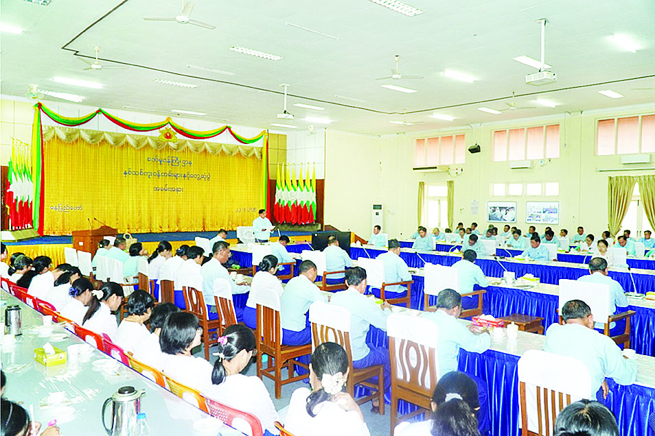 ထို့နောက် ဒုတိယဝန်ကြီး၊ အမြဲတမ်းအတွင်းဝန်နှင့် ဌာနဆိုင်ရာတာဝန်ရှိသူများက ဝန်ထမ်းများ လတ်တလောနေရာချထားပေးမှုနှင့် မိုးကာတဲများ၊ ဘာရှာတဲများ ဆောက်လုပ်နေမှုအခြေအနေ၊ သွားလာနေထိုင်ရေး စီစဉ်ပေးထားမှုအခြေအနေတို့ကို ဆွေးနွေးတင်ပြခဲ့ကြသည်။ ညနေပိုင်းတွင် ပြည်ထောင်စုဝန်ကြီးနှင့် အဖွဲ့သည် ရုံးဝန်းကျင်ဆောက်လုပ်ထားသော မိုးကာတဲများ၊ ယာယီတဲများ ဆောက်လုပ်နေမှု၊ ဆောက်လုပ်ရန် လျာထားနေရာတို့ကို လိုက်လံကြည့်ရှုစစ်ဆေးခဲ့ကြသည်။