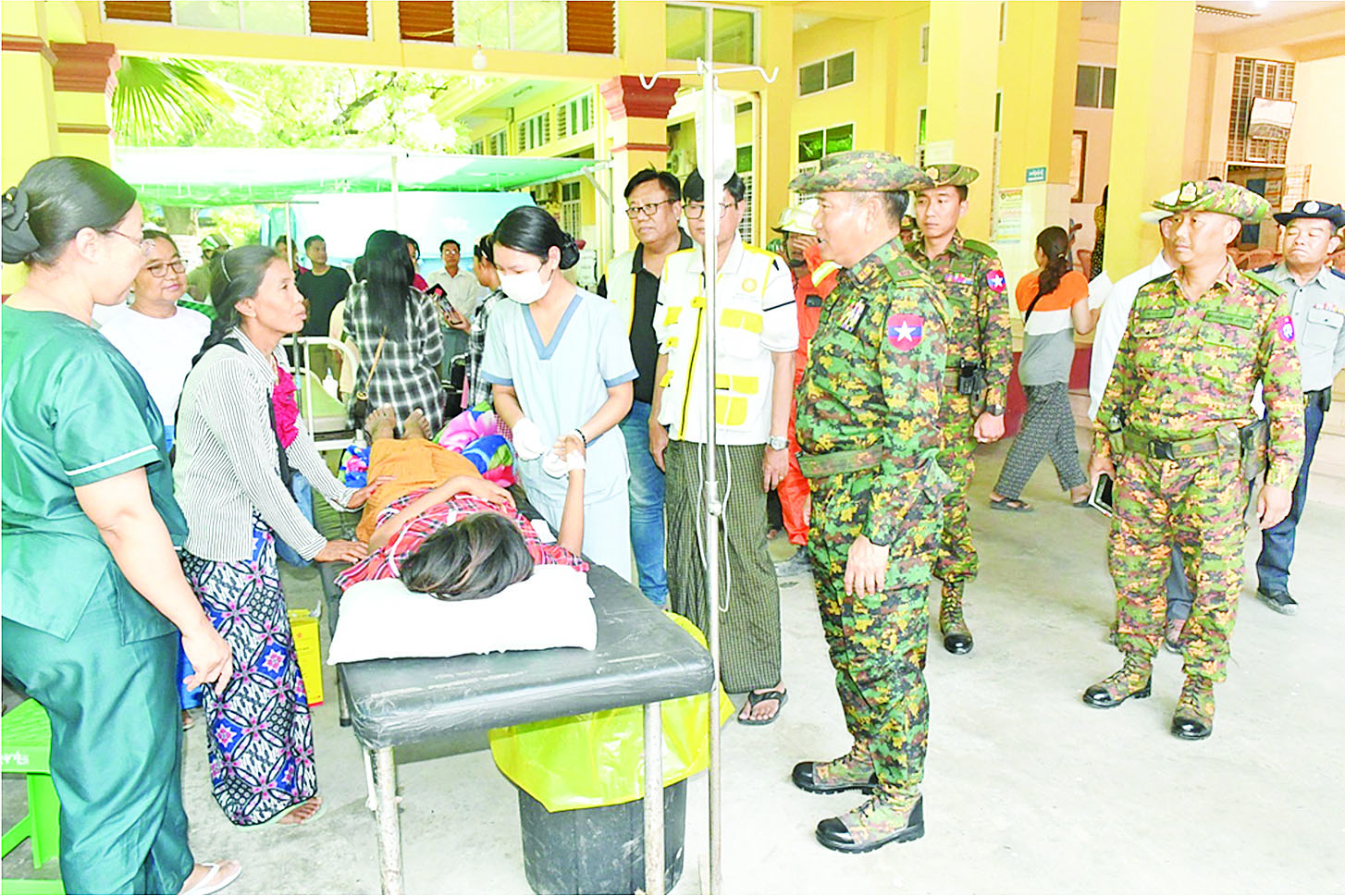 အလားတူ ကာကွယ်ရေးဦးစီးချုပ်ရုံး(ကြည်း)မှ ဒုတိယဗိုလ်ချုပ်ကြီး မျိုးမိုးအောင်နှင့် တာဝန်ရှိသူများသည် မန္တလေးမြို့၊ နန်းမြို့ရိုးသို့သွားရောက်၍ ရတနာပုံဥယျာဉ်လမ်းမတစ်လျောက် အများပြည်သူများ စိတ်အေးချမ်းသာစွာ အပန်းဖြေနိုင်ရေးအတွက် သန့်ရှင်းရေးဆောင်ရွက်နေမှုများ၊ မြို့ရိုးအရှေ့ဘက်ရှိ ငလျင်ဒဏ်ကြောင့် ပြိုကျပျက်စီးသွားသော လွန်ကဲပြသာဒ်နေရာတွင် အပျက်အစီးများ ဖယ်ရှားရှင်းလင်းနေမှုများ၊ ပြည်ကြီးတံခွန်မြို့နယ်ရှိ မြို့နယ်ရဲတပ်ဖွဲ့မှူးရုံးနှင့် မြို့မရဲစခန်းနေရာ၊ ချမ်းအေးသာစံမြို့နယ်ရှိ ဗဟိုမီးသတ်ရုံးတို့၌ ငလျင်ဒဏ်ကြောင့် ထိခိုက်ပျက်စီးမှုများအား လိုက်လံကြည့်ရှုစစ်ဆေးပြီး မိသားစုများအား တွေ့ဆုံအားပေး စကားပြောကြားကာ စားသောက်ဖွယ်ရာများ၊ အသုံးအဆောင်ပစ္စည်းများနှင့် အဝတ်အထည်များ ပေးအပ်သည်။
