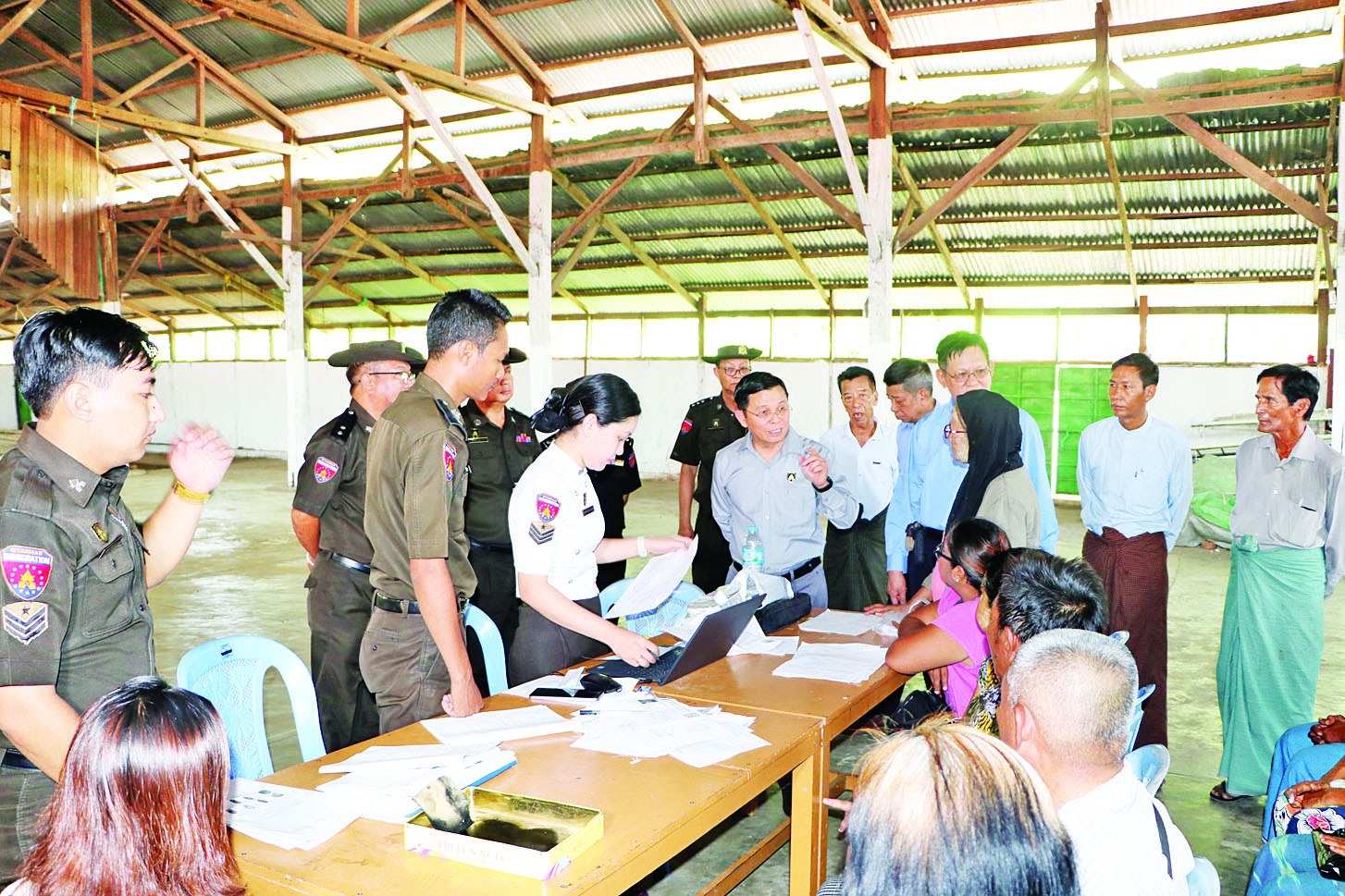 အမျိုးသားသဘာဝဘေးအန္တရာယ်ဆိုင်ရာ စီမံခန့်ခွဲမှုကော်မတီအဖွဲ့ဝင်၊ လူဝင်မှုကြီးကြပ်ရေးနှင့် ပြည်သူ့အင်အားဝန်ကြီးဌာန ပြည်ထောင်စုဝန်ကြီး ဦးမြင့်ကြိုင်သည် ဒုတိယဝန်ကြီးများနှင့်အတူ ယနေ့နံနက်ပိုင်းက နေပြည်တော်ကောင်စီနယ်မြေ၊ ပျဉ်းမနားမြို့၊ ရန်အောင် (၂)ရပ်ကွက်၊ တပေါင်းကွင်း၌ မြေငလျင်ဒဏ်ခံရသည့် ပြည်သူများအတွက် ဖွင့်လှစ်ထားရှိသည့် မြို့နယ်သဘာဝဘေးအန္တရာယ် ကယ်ဆယ်ရေးစခန်းသို့ သွားရောက်၍ အဆိုပါစခန်းအတွင်း၌ ပျဉ်းမနားမြို့နယ်ဦးစီးမှူးရုံးမှ ဝန်ထမ်းများက ငလျင်ဒဏ်ကြောင့် အိမ်ထောင်စုလူဦးရေစာရင်းနှင့် နိုင်ငံသားစိစစ်ရေးကတ်ပြား ပျက်စီး၊ ပျောက်ဆုံးသွားသူများအား အိမ်ထောင်စုလူဦးရေစာရင်းနှင့် နိုင်ငံသားစိစစ်ရေးကတ်ပြား ပြန်လည်စိစစ်ထုတ်ပေးနေမှု၊ နိုင်ငံသားကတ်ပြားရရှိပြီးသူများအား e-ID စနစ်ဖြင့် Biographic / Biometric ကောက်ယူကာ Unique ID နံပါတ် ထုတ်ပေးဆောင်ရွက်နေမှုကို လှည့်လည်ကြည့်ရှုအားပေးသည်။