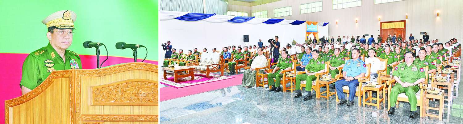 (၇၅)နှစ်မြောက် စိန်ရတုကာကွယ်ရေးပစ္စည်းထုတ်လုပ်မှုတပ်ဖွဲ့နေ့ အခမ်းအနားကို ယနေ့နံနက်ပိုင်းတွင် နေပြည်တော်ကောင်စီနယ်မြေအတွင်းရှိ နယ်မြေခံတပ်ဌာနချုပ်ခန်းမ၌ ကျင်းပပြုလုပ်ရာ နိုင်ငံတော်စီမံအုပ်ချုပ်ရေးကောင်စီဥက္ကဋ္ဌ တပ်မတော်ကာကွယ်ရေးဦးစီးချုပ် ဗိုလ်ချုပ်မှူးကြီး မင်းအောင်လှိုင် တက်ရောက်ချီးမြှင့်သည်။