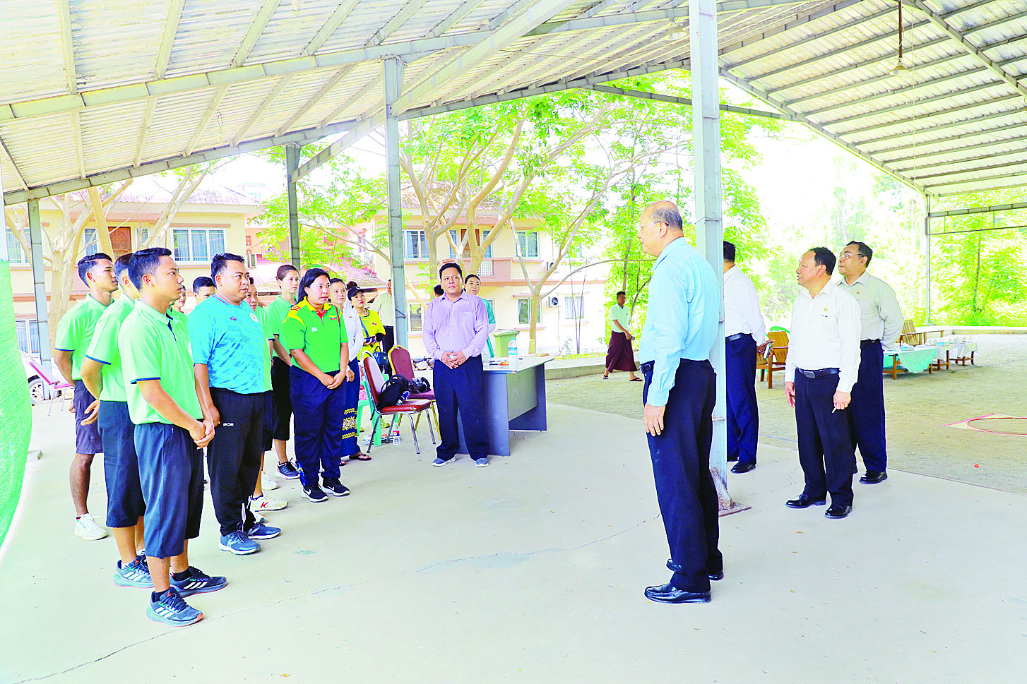 (၃၃)ကြိမ်မြောက် အရှေ့တောင်အာရှအားကစားပြိုင်ပွဲသို့ ဝင်ရောက်ယှဉ်ပြိုင်ရန်အတွက် နေပြည်တော်၌ စခန်းဝင်လေ့ကျင့်လျက်ရှိသည့် ပီတန်းအားကစားသမားများ၏ ပထမအကြိမ် Single Shooting လက်ရည်ဆန်းစစ်ပြိုင်ပွဲနှင့် ဆုချီးမြှင့်ပွဲကို ယနေ့နံနက်ပိုင်းတွင် နေပြည်တော်အားကစားလေ့ကျင့်ရေးစခန်း (Gold Camp)၌ ကျင်းပရာ အားကစားနှင့်လူငယ်ရေးရာဝန်ကြီးဌာန ပြည်ထောင်စုဝန်ကြီး Jeng Phang နော်တောင်၊ ဒုတိယဝန်ကြီးများဖြစ်ကြသည့် ဦးထိန်လင်း၊ ဦးဇင်မင်းထက်နှင့် တာဝန်ရှိသူများ တက်ရောက်ကြည့်ရှုအားပေးသည်။