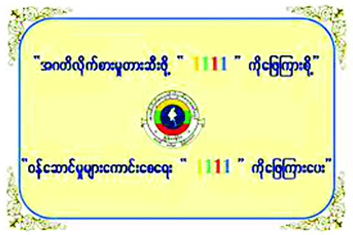 ၄။ သို့ဖြစ်ပါ၍ ပြည်သူလူထုအနေဖြင့် ကော်မရှင်နှင့် ပြည်ထောင်စုဝန်ကြီးဌာန/အဖွဲ့အစည်းများရှိ အဂတိလိုက်စားမှုတားဆီးကာကွယ်ရေးအဖွဲ့များက Short Code “1111” ဖြင့် SMS ပေးပို့မေးမြန်းလိုက်သော မေးခွန်းများကို ပြန်လည်ဖြေကြားပေးခြင်းသည် အဂတိလိုက်စားမှုတားဆီးကာကွယ်ရေးလုပ်ငန်းများတွင် တစ်ဖက်တစ်လမ်းမှ ပါဝင်ဆောင်ရွက်ခြင်းဖြစ်သဖြင့် အများပြည်သူထံမှ တုံ့ပြန်မှုရယူခြင်းအစီအစဉ်ကို အတူတကွ ပူးပေါင်းပါဝင်ဆောင်ရွက်စေလိုပါကြောင်း အသိပေးနှိုးဆော်တင်ပြအပ်ပါသည်။