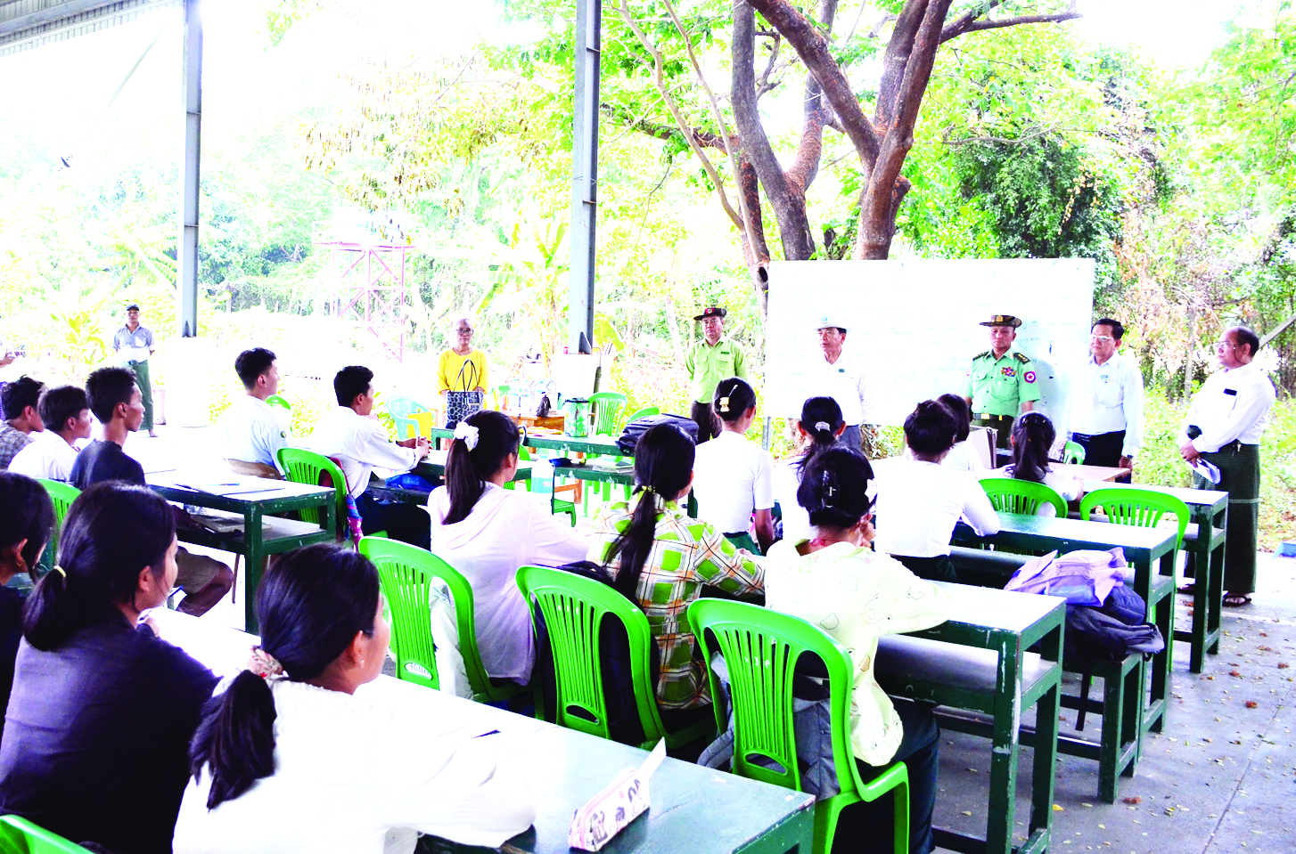 နေပြည်တော်ကောင်စီဥက္ကဋ္ဌ ဦးသန်းထွန်းဦးသည် တာဝန်ရှိသူများနှင့်အတူ ယမန်နေ့မွန်းလွဲပိုင်းက ၂၀၂၅ ခုနှစ် တက္ကသိုလ်ဝင်စာမေးပွဲ ပြန်လည်ဖြေဆိုမည့် ကျောင်းသားကျောင်းသူများအား စခန်းသွင်းလေ့ကျင့်သင်ကြားနေမှု အခြေအနေများကို လှည့်လည်ကြည့်ရှုစစ်ဆေးသည်။
