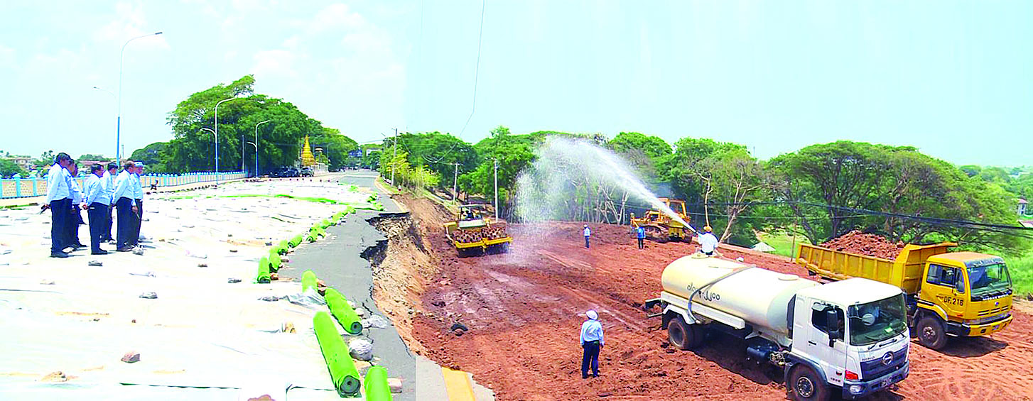 စိုက်ပျိုးရေး၊ မွေးမြူရေးနှင့်ဆည်မြောင်းဝန်ကြီးဌာန ဒုတိယဝန်ကြီး ဦးဗိုလ်ဗိုလ်ကျော်သည် တာဝန်ရှိသူများနှင့်အတူ ယမန်နေ့နံနက်ပိုင်းက မန္တလေးတိုင်းဒေသကြီးအတွင်း မန္တလေးငလျင်ကြီးလှုပ်ခတ်ပြီးနောက် ဆည်၊ ကန်၊ တမံ၊ ရေသောက်စနစ် ထိခိုက်ပျက်စီးမှုနှင့် အရေးပေါ်ယာယီပြုပြင်ဆောင်ရွက်၍ စိုက်ပျိုးရေပြန်လည်ပေးဝေနေမှုအခြေအနေများကို ကွင်းဆင်းကြည့်ရှုစစ်ဆေးသည်။