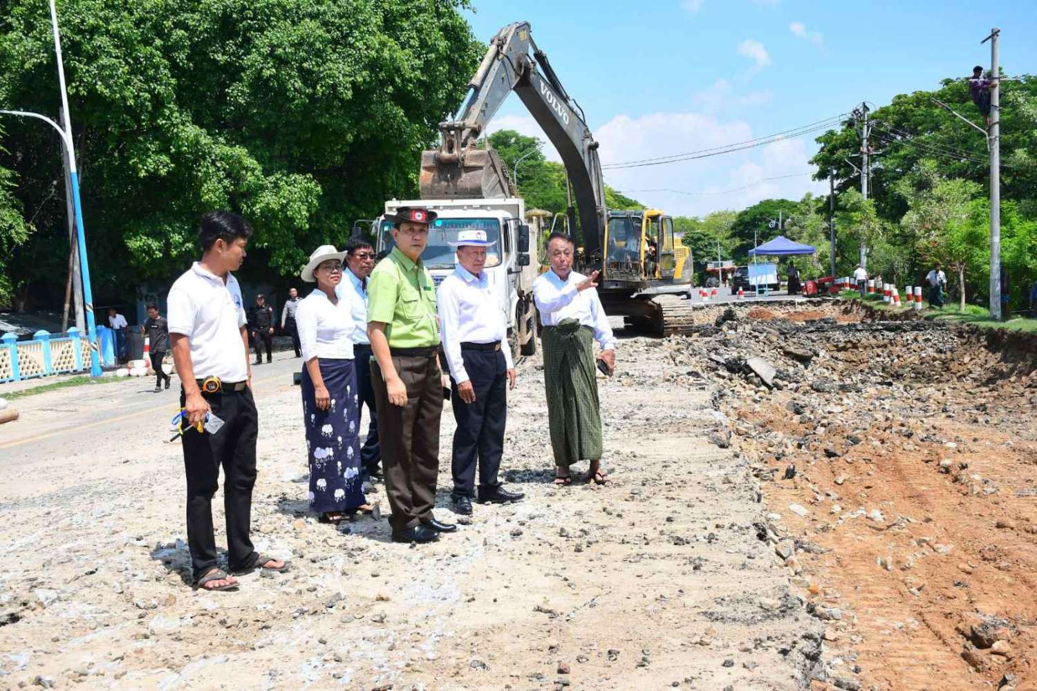 မိတ္ထီလာမြို့ ရန်ကုန်-မန္တလေး ကားလမ်းပိုင်းနေရာ (မိတ္ထီလာတောင်ကန် ကန်ပေါင်) ပြိုကျပျက်စီးမှု ပြုပြင်တည်ဆောက်လုပ်ငန်းများအား မန္တလေးတိုင်းဒေသကြီး လမ်းပန်းဆက်သွယ်ရေးဝန်ကြီး ကြည့်ရှုစစ်ဆေး