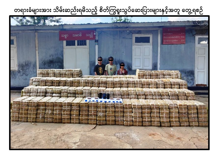 ရှမ်းပြည်နယ်ရဲတပ်ဖွဲ့မှ တပ်ဖွဲ့ဝင်များပါဝင်သော ပူးပေါင်းအဖွဲ့သည် မေလ ၅ ရက်နေ့ ည ၁၁ နာရီခွဲအချိန် တောင်ကြီးမြို့နယ်၊ အေးသာယာမြို့၊ ရပ်ကွက် (၁၁)၊ နယ်မြေ (၇၆) ရှိ သန်းထွေးအောင် (ခ) ခေါကြီး၏ နေအိမ်တွင် မူးယစ်ဆေးဝါးများ သိုဝှက်ထားကြောင်း တာဝန်သိပြည်သူတစ်ဦး၏ သတင်းပေးချက်အရ ရှာဖွေရာ ၎င်းနှင့်အတူ မချောချောဦး(ခ)မစုနှင့် အောင်နိုင်ထွန်းဦးတို့ ၃ ဦးအား ဆာလာအိတ် ၁၇၅ အိတ်ဖြင့်ထည့်လျက် ဒေသကာလတန်ဖိုးငွေကျပ် ၁၇ ဒသမ ၅ ဘီလီယံတန်ဖိုးရှိ စိတ်ကြွရူးသွပ်ဆေးပြား သိန်း ၃၅၀ နှင့်အတူ ဖမ်းဆီးရမိခဲ့သဖြင့် ၎င်းတို့အား ဥပဒေအရ အရေးယူထားရှိပြီး ကွင်းဆက်ပြစ်မှုကျူးလွန်သူများအား ဆက်လက်ဖော်ထုတ်လျက်ရှိကြောင်း မြန်မာနိုင်ငံရဲတပ်ဖွဲ့မှ သတင်းရရှိသည်။
