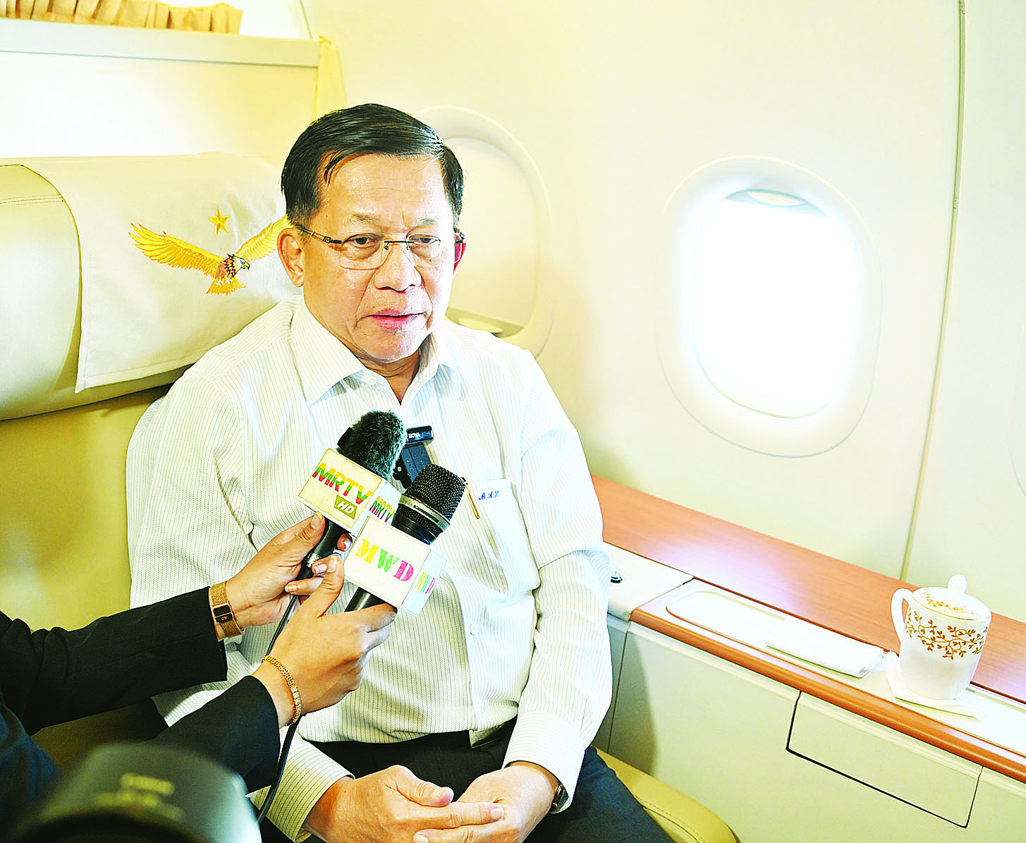ထိုသို့အထူးလေယာဉ်ဖြင့် ပြန်လည်ထွက်ခွာလာစဉ် အထူးလေယာဉ်ပေါ်၌ နိုင်ငံတော်စီမံအုပ်ချုပ်ရေးကောင်စီဥက္ကဋ္ဌ နိုင်ငံတော်ဝန်ကြီးချုပ်သည် မီဒီယာများ၏ သိရှိလိုသည့်မေးမြန်းမှုများကို လက်ခံဖြေကြားခဲ့ပြီး မေးမြန်းဖြေကြားမှုအပြည့်အစုံကို ဖော်ပြလိုက်ရပါသည်။