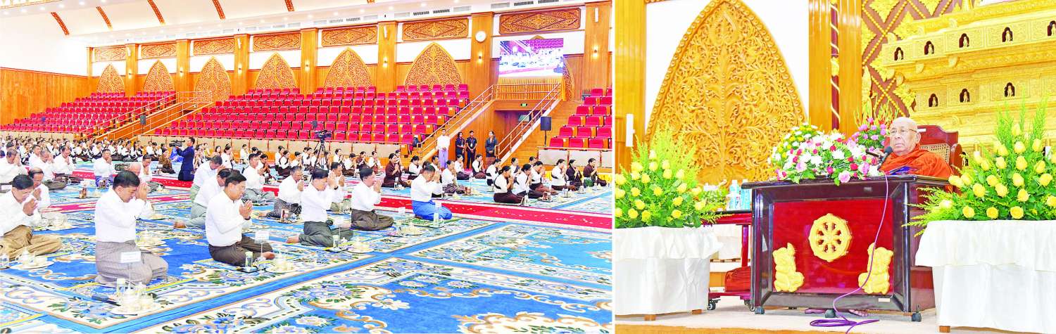 ဦးစွာ အခမ်းအနားကို နမောတဿသုံးကြိမ်ရွတ်ဆိုဘုရားကန်တော့ဖွင့်လှစ်ပြီး နိုင်ငံတော်စီမံအုပ်ချုပ်ရေးကောင်စီဒုတိယဥက္ကဋ္ဌ ဒုတိယဝန်ကြီးချုပ်နှင့်ဇနီး အမှူးပြုသော ဧည့်ပရိသတ်များက သီတဂူဆရာတော်ဒေါက်တာဘဒ္ဒန္တဉာဏိဿရထံမှ ကိုးပါးသီလခံယူဆောက်တည်ကြပြီး သီတဂူဆရာတော်ကြီး ဟောကြားတော်မူသည့် ကဆုန်လပြည့်(ဗုဒ္ဓနေ့)ဆိုင်ရာ ဓမ္မကထာဒေသနာတော်ကို ရိုသေလေးမြတ်စွာ နာယူကြသည်။