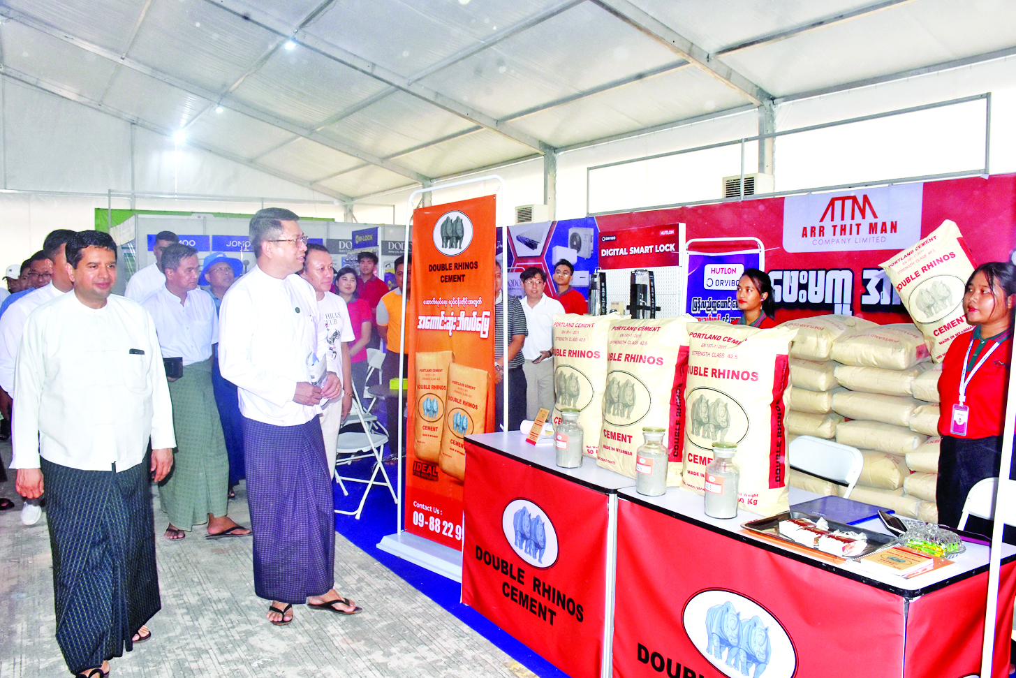 ဒုတိယဝန်ကြီးသည် ခင်းကျင်းပြသရောင်းချမည့် သံ၊ သံမဏိ၊ ဘိလပ်မြေနှင့် ဆောက်လုပ်ရေးလုပ်ငန်းသုံးပစ္စည်းများအတွက် ပြခန်းဆောင် တည်ဆောက်ပြီးစီးမှု၊ ပြသရောင်းချမည့်ပစ္စည်းများ အရည်အသွေးပြည့်မီစေရေး၊ စတင်ဖွင့်လှစ်ရောင်းချမည့်နေ့တွင် အဆင်သင့်ဖြစ်စေရေးတို့ကို တာဝန်ရှိသူများအား လိုအပ်သည်များမှာကြားကာ ပြခန်းဆောင်များကို ကြည့်ရှုစစ်ဆေးသည်။