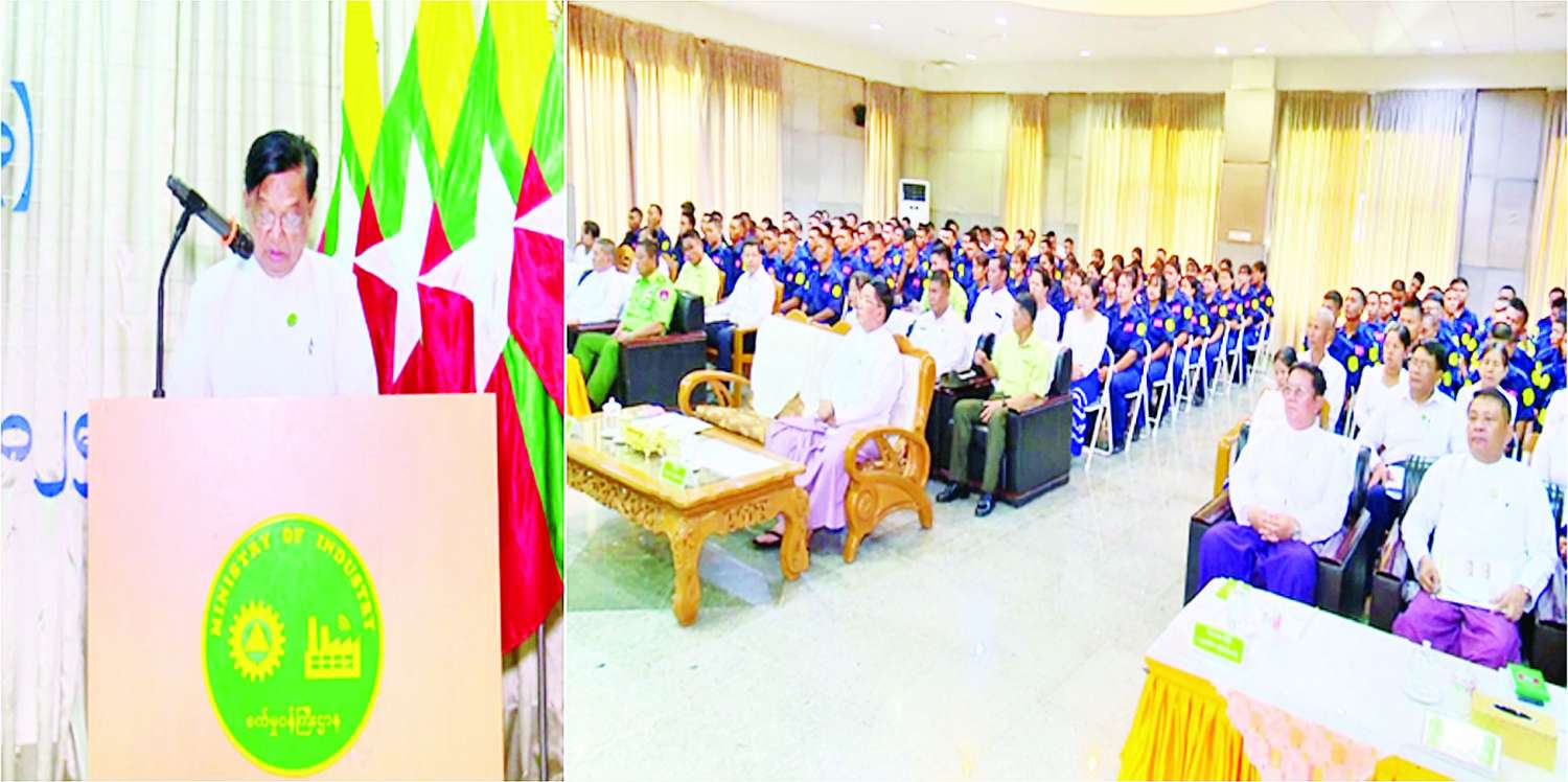ဦးစွာ ပြည်ထောင်စုဝန်ကြီးက စက်မှုလက်မှုဖွံ့ဖြိုးတိုးတက်ရေးတွင် အခြေခံလိုအပ်ချက်ဖြစ်သည့် လူ့စွမ်းအားအရင်းအမြစ် စက်မှုကျွမ်းကျင်လုပ်သားများ မွေးထုတ်ပေးနိုင်ရန်ရည်ရွယ်ချက်ဖြင့် စက်မှုဝန်ကြီးဌာနမှ စက်မှုသင်တန်းကျောင်းများကို ဖွင့်လှစ်ခဲ့ခြင်းဖြစ်ကြောင်း၊ ဆရာ ဆရာမများက သင်ခန်းစာကို အခြေခံကစပြီး ကျွမ်းကျင်တတ်မြောက်သည်အထိ သင်ကြားပေးမည်ဖြစ်၍ စာသင်နှစ်အတွင်း မိမိဘဝအတွက် အချိန်ကိုအကျိုးရှိစွာ အသုံးချရမည်ဖြစ်ကြောင်း၊ သင်ကြားပေးလိုက်သည့် စက်မှုပညာများကို လုပ်ငန်းခွင်ဝင်သည့်အခါ စာတွေ့နှင့် လက်တွေ့ပေါင်းစပ်ပြီး စဉ်ဆက်မပြတ်သင်ယူလေ့လာကြပါ၊ ကျရာအခန်းကဏ္ဍမှ နိုင်ငံနှင့်လူမျိုးအတွက် စက်မှုနှင့်ပတ်သက်သည့် အကျိုးပြုလုပ်ငန်းများ ဆောင်ရွက်ကြပါ၊ စက်မှုအခြေခံကောင်းများမှစ၍ တီတွင်သုတေသနပြုမှု၊ ဒီဇိုင်းဆန်းသစ်မှု၊ ခေတ်နှင့်အမီ ရင်ပေါင်တန်းနိုင်မှု၊ စီးပွားရေးတွက်ခြေကိုက်မှုများနှင့် စက်မှုကုန်ထုတ်လုပ်ငန်းများ အဆင့်မြှင့်ဆောင်ရွက်နိုင်သည်အထိ ကြိုးစားသွားကြရန် ပြောကြားသည်။