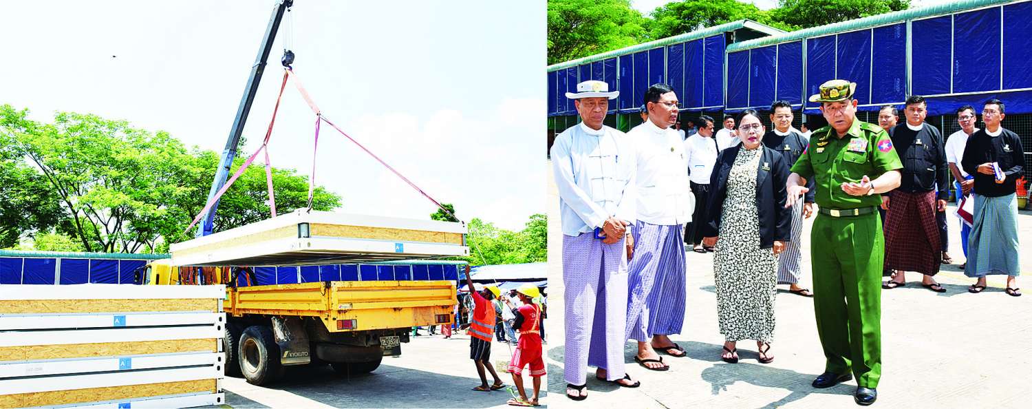 ယင်းနောက် ပြည်ထောင်စုဝန်ကြီးနှင့် ပြည်ထောင်စုရှေ့နေချုပ်က Container House များ လာရောက်တပ်ဆင်ပေးသည့် တရုတ်ပြည်သူ့သမ္မတနိုင်ငံ ပညာရှင်အဖွဲ့အား ကျေးဇူးတင်စကား ပြောကြားပြီး တည်ဆောက်တပ်ဆင်နေသည့် ယာယီအဆောက်အအုံများကို လှည့်လည်ကြည့်ရှုစစ်ဆေးခဲ့ကြောင်း သိရသည်။