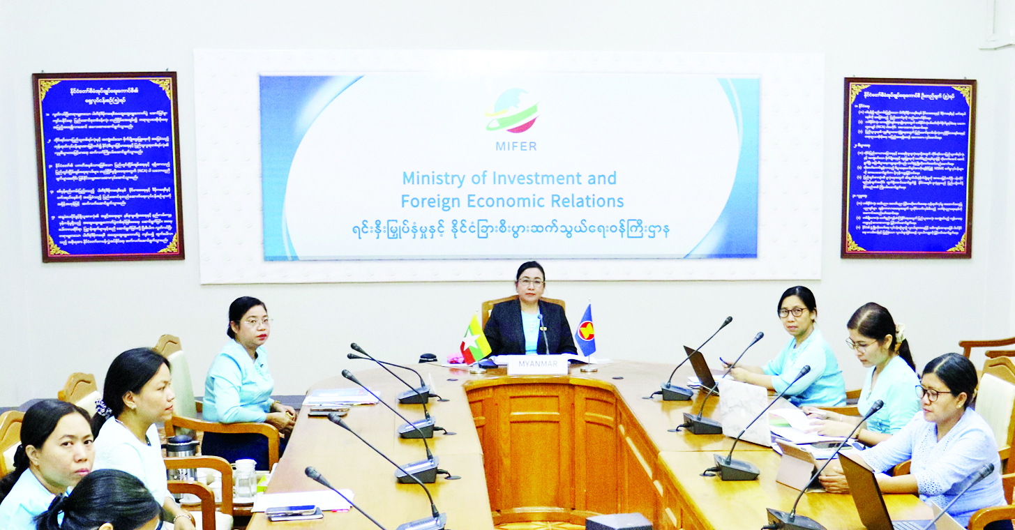 ပထမအကြိမ် အာဆီယံပထဝီစီးပွားရေးလုပ်ငန်းအဖွဲ့အစည်းအဝေး(Inaugural Meeting of ASEAN Geoeconomics Task Force)ကို ယနေ့တွင် ဗီဒီယိုကွန်ဖရင့်စနစ်ဖြင့် ကျင်းပရာ မြန်မာနိုင်ငံ၏ အာဆီယံပထဝီစီးပွားရေး လုပ်ငန်းအဖွဲ့ခေါင်းဆောင် ရင်းနှီးမြှုပ်နှံမှုနှင့် နိုင်ငံခြားစီးပွား ဆက်သွယ်ရေးဝန်ကြီးဌာန ဒုတိယဝန်ကြီး ဒေါက်တာဝါဝါမောင် ဦးဆောင်သည့် ကိုယ်စားလှယ်အဖွဲ့ တက်ရောက်သည်။