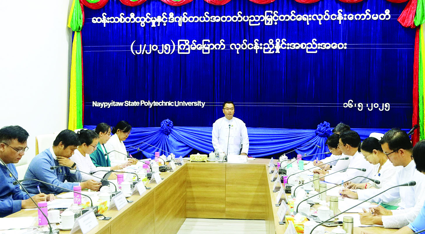 ဒစ်ဂျစ်တယ်စီးပွားရေးဖွံ့ဖြိုးတိုးတက်မှုကော်မတီ၊ ဆန်းသစ်တီထွင်မှုနှင့် ဒစ်ဂျစ်တယ်အတတ်ပညာမြှင့်တင်ရေးလုပ်ငန်းကော်မတီ (၂/၂၀၂၅) လုပ်ငန်းညှိနှိုင်းအစည်းအဝေးကို ယမန်နေ့ နံနက်ပိုင်းက Naypyitaw State Polytechnic University ၌ Hybrid စနစ်ဖြင့် ကျင်းပပြုလုပ်သည်။
