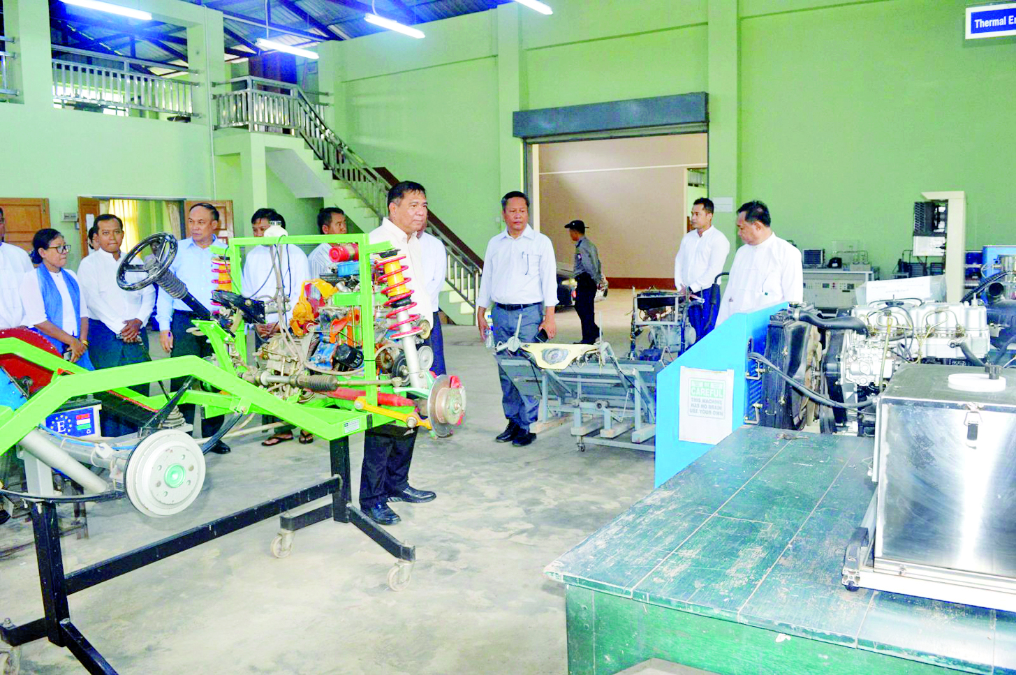 မေ ၁၅ ရက် မွန်းလွဲပိုင်းတွင် ပြည်ထောင်စုဝန်ကြီးသည် နည်းပညာတက္ကသိုလ် (မှော်ဘီ) သို့ ရောက်ရှိပြီး ပါမောက္ခချုပ်၊ ဒုတိယပါမောက္ခချုပ်၊ ဌာနမှူး၊ ဆရာ ဆရာမများ၊ ဝန်ထမ်းများနှင့် တွေ့ဆုံ၍ တက္ကသိုလ်အနေဖြင့် အရည်အချင်းပြည့်မီသော၊ ကျင့်ဝတ်စည်းမျဉ်းစည်းကမ်းများကို လိုက်နာတတ်သော၊ သုတေသနပြုမှုနှင့် တီထွင်ဖန်တီးနိုင်စွမ်းရှိသည့် နိုင်ငံအကျိုးပြု အင်ဂျင်နီယာပညာရှင်များ၊ ဗိသုကာပညာရှင်များအား မွေးထုတ်ပေးရန် မှာကြားကာ မန္တလေးမြေငလျင်လှုပ်ခတ်မှုကြောင့် သက်ရောက်မှုများရှိသည့် ပင်မဆောင်ရှိ စာသင်ခန်းများနှင့် အဆောက်အအုံများကို လှည့်လည်ကြည့်ရှုစစ်ဆေးပြီး လိုအပ်သည်များ ပေါင်းစပ်ညှိနှိုင်းဆောင်ရွက်ပေးသည်။