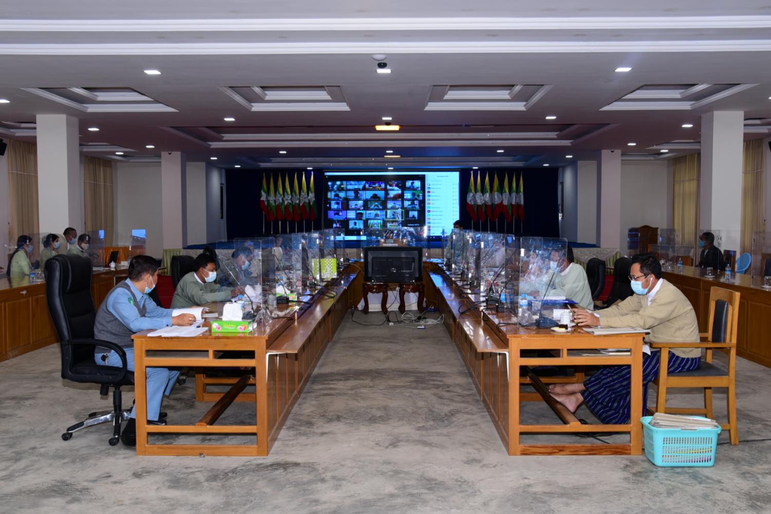 ရှမ်းပြည်နယ် လယ်ယာမြေနှင့်အခြားမြေများ သိမ်းဆည်းခြင်းခံရမှုများ ပြန်လည်စိစစ်ရေး ကော်မတီ၏ Video Conferencing System ဖြင့် ပြုလုပ်သည့် (zoom Meeting) လုပ်ငန်းညှိနှိုင်း အစည်းအဝေး အမှတ်စဉ် (၅/၂၀၂၀)ကို အောက်တိုဘာ (၁၄)ရက် နံနက်(၁၀)နာရီ က တောင်ကြီးမြို့၊ ရှမ်းပြည်နယ်အစိုးရအဖွဲ့ရုံး အစည်းအဝေးခန်းမ၌ ကျင်းပသည်။
