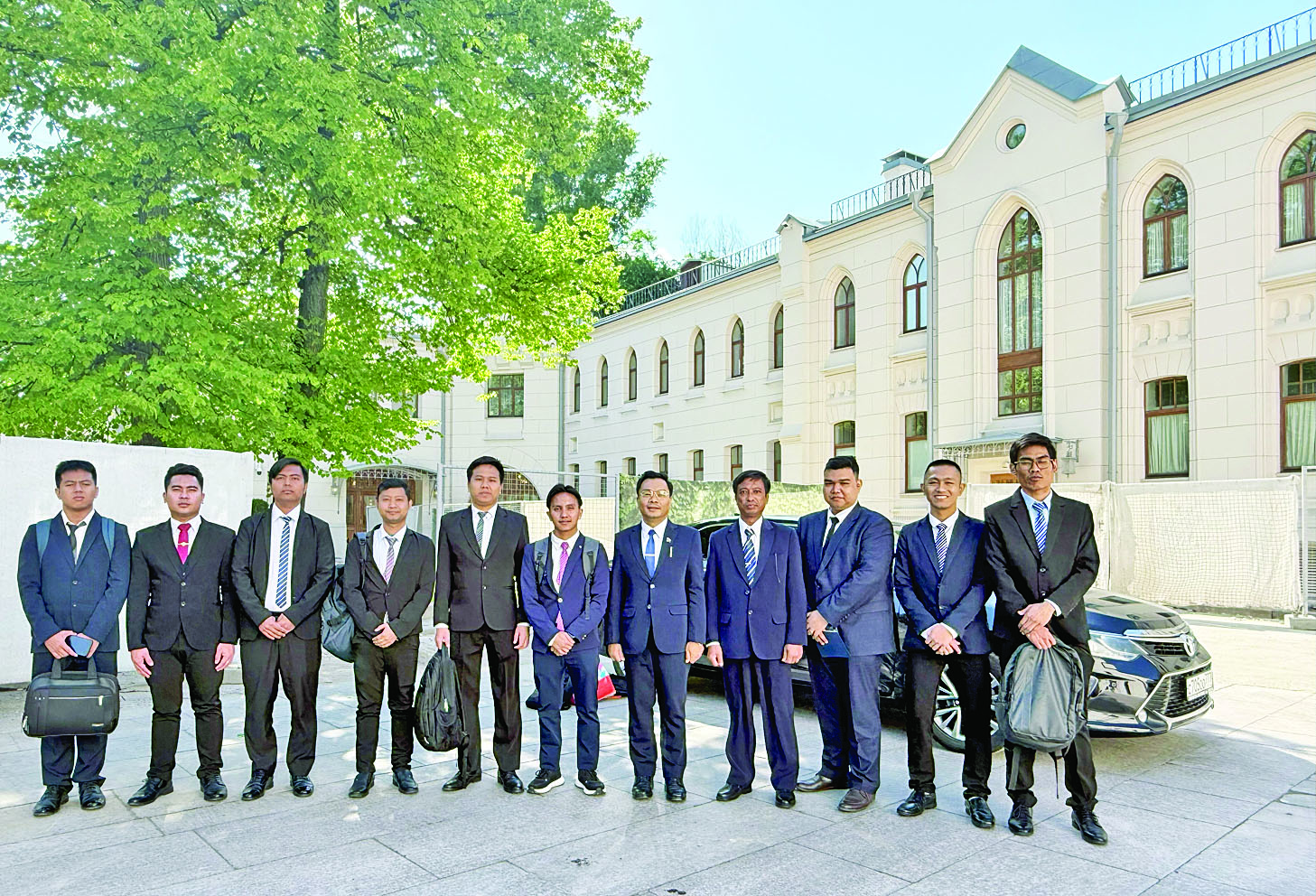 ရုရှားဖက်ဒရေးရှင်းနိုင်ငံ နိုင်ငံခြားရေးဝန်ကြီးဌာနမှ ဖိတ်ကြားချက်အရ - ဇီဝလက်နက် တားဆီးပိတ်ပင်ရေး စာချုပ်၊ အမျိုးသားအဆင့်အကောင်အထည်ဖော်ဆောင်ရေးအဖွဲ့ (Biological Weapon Convention/ BWC-National Authority) ဥက္ကဋ္ဌဖြစ်သူ သိပ္ပံနှင့်နည်းပညာဝန်ကြီးဌာန ဒုတိယဝန်ကြီး ဒေါက်တာ အောင်ဇေယျသည် မေ ၂၂ ရက်တွင် မော်စကိုမြို့တော်ရှိ နိုင်ငံခြားရေးဝန်ကြီးဌာနတွင် ကျင်းပသော ရုရှား-မြန်မာဇီဝလုံခြုံရေးကဏ္ဍ၌ ပူးပေါင်းဆောင်ရွက်ရေးဆိုင်ရာ ညှိနှိုင်းဆွေးနွေးပွဲကို တက်ရောက်သည်။