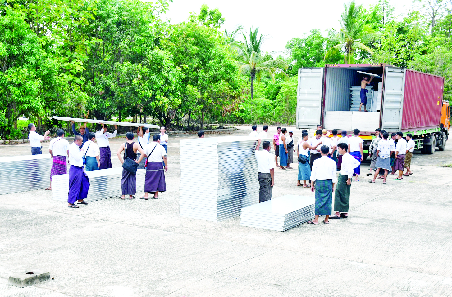 တိုင်းရင်းသားလူမျိုးများရေးရာဝန်ကြီးဌာန ပြည်ထောင်စုဝန်ကြီး ခွန်သန့်ဇော်ထူးသည် ဒုတိယဝန်ကြီး ဦးဇော်အေးမောင်၊ ဌာနဆိုင်ရာအကြီးအကဲများနှင့်အတူ ယနေ့မွန်းလွဲပိုင်းတွင် မန္တလေးငလျင်ကြောင့် ငလျင်ဒဏ်သင့်ခဲ့သည့် ဝန်ထမ်းနှင့် ဝန်ထမ်းမိသားစုများ ယာယီနေထိုင်နိုင်ရေးအတွက် Modular House များ ရောက်ရှိလာပြီး ကွန်တိန်နာပေါ်မှ သယ်ချနေမှုနှင့် တပ်ဆင်တည်ဆောက်နေမှုကို လိုက်လံကြည့်ရှုစစ်ဆေးသည်။