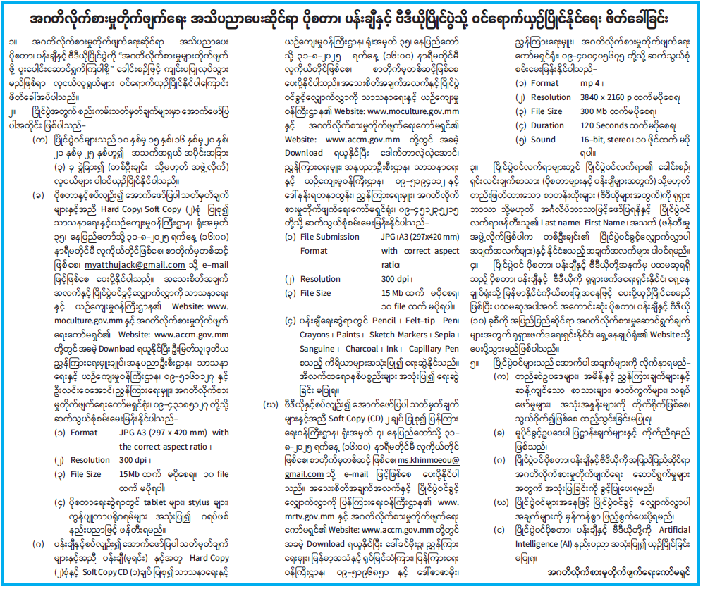 အဂတိလိုက်စားမှုတိုက်ဖျက်ရေး အသိပညာပေးဆိုင်ရာ ပိုစတာ၊ ပန်းချီနှင့် ဗီဒီယိုပြိုင်ပွဲသို့ ဝင်ရောက်ယှဉ်ပြိုင်နိုင်ရေး ဖိတ်ခေါ်ခြင်း
