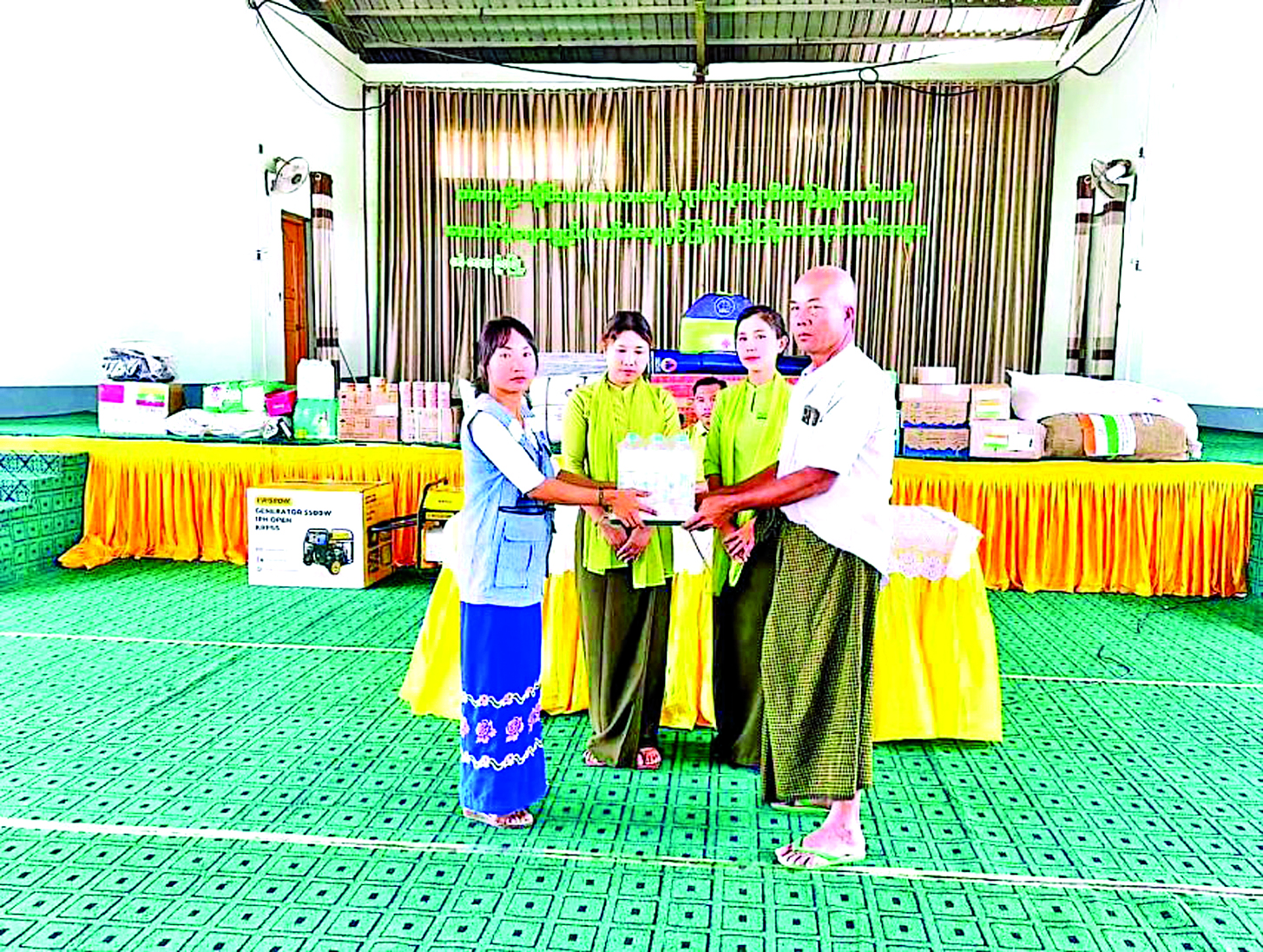 ယခုအခါ မေ ၂၀ ရက်မှ ၂၇ ရက်အထိ ရက်သတ္တတစ်ပတ်အတွင်း ထိုင်းနိုင်ငံရောက် စေတနာရှင်များ၊ သီရိလင်္ကာနိုင်ငံနှင့် တရုတ်နိုင်ငံ၊ ချုံချင့်မြူနီစီပယ်အစိုးရတို့က ထပ်မံပေးပို့လှူဒါန်းလာသော မိုးကာတဲ၊ မီးစက်၊ စားသောက်ကုန်၊ လူသုံးကုန်၊ အိမ်သုံးပစ္စည်း၊ လျှပ်စစ်ပစ္စည်း၊ ဆေးနှင့် ဆေးပစ္စည်းများအနက် ဆေးနှင့် ဆေးပစ္စည်းများကို ကျန်းမာရေးစောင့်ရှောက်မှုလုပ်ငန်းကော်မတီ (ကျန်းမာရေးဝန်ကြီးဌာန) သို့လည်းကောင်း၊ မီးစက်၊ စားသောက်ကုန်၊ လူသုံးကုန်၊ အိမ်သုံးပစ္စည်း၊ လျှပ်စစ်ပစ္စည်းများကို ဘေးသင့်လူဦးရေအချိုးအစားအပေါ် မူတည်၍ နေပြည်တော်၊ စစ်ကိုင်းတိုင်းဒေသကြီး၊ မန္တလေးတိုင်းဒေသကြီးနှင့် ရှမ်းပြည်နယ်တို့သို့ ဖြန့်ခွဲပေးပို့ပြီးဖြစ်သည်။