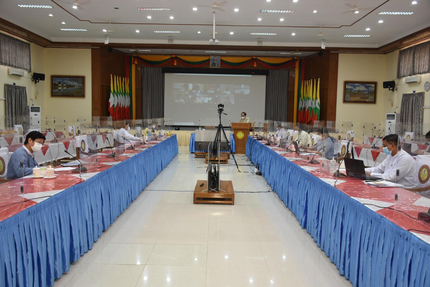 ရန်ကုန်တိုင်းဒေသကြီးတွင် လက်ရှိဆောင်ရွက်နေသည့် ကိုဗစ်-၁၉ ကုသရေးနှင့် ပြည်သူ့ကျန်းမာရေး လုပ်ငန်းများအား ဆန်းစစ်သုံးသပ်မှု အပတ်စဉ် အစည်းအဝေးကို ယနေ့ မွန်းလွဲပိုင်းတွင် Video conferencing ဖြင့် ကျင်းပသည်။