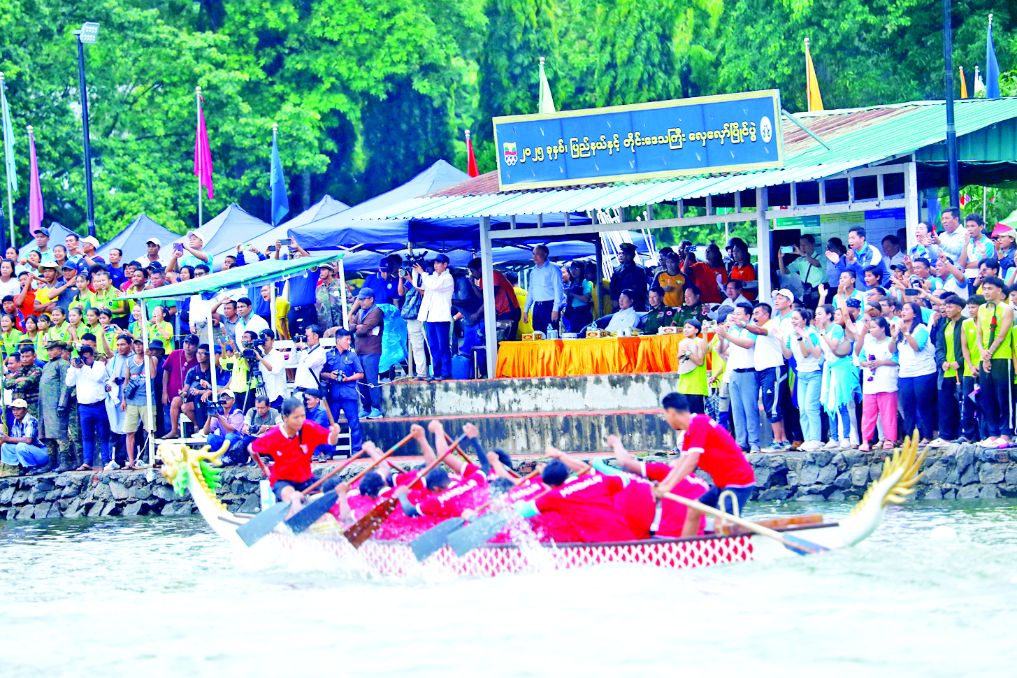 ယင်းနောက် ရန်ကုန်တိုင်းဒေသကြီး ဝန်ကြီးချုပ်၊ ဒုတိယဝန်ကြီး၊ ရန်ကုန်တိုင်းဒေသကြီးဝန်ကြီးများနှင့် တာဝန်ရှိသူများသည် ပြိုင်ပွဲဝင်အသင်းများအား ရင်းရင်းနှီးနှီးလိုက်လံနှုတ်ဆက်ကာ ယနေ့ပွဲစဉ်များအဖြစ် မီတာ ၅၀၀ ပြိုင်ပွဲတွင် အမျိုးသား (၁၀) တက် လှေပြိုင်ပွဲ၊ အမျိုးသမီး (၁၀) တက်လှေပြိုင်ပွဲ၊ အမျိုးသား/အမျိုးသမီး (၁၀) တက် လှေပြိုင်ပွဲနှင့် အမျိုးသား/အမျိုးသမီး (၂၀) တက် လှေပြိုင်ပွဲများကို ကြည့်ရှုအားပေးခဲ့ကြောင်း သိရသည်။