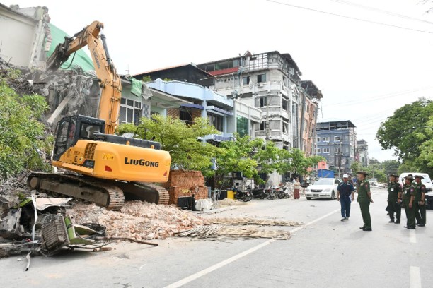ထို့နောက် မဟာအောင်မြေမြို့နယ်အတွင်းရှိ ငလျင်ဒဏ်သင့်၍ ထိခိုက်ပျက်စီးခဲ့သော အန္တရာယ်ရှိအဆောက်အအုံများအား ဖြိုချပြီး အပျက်အစီးများ အပြီးသတ်ရှင်းလင်းနေမှု၊ ဖြိုချဖျက်ဆီးဆဲအန္တရာယ်ရှိ အဆောက်အအုံများ၌ စက်ယန္တရားကြီးများ အသုံးပြု၍ အင်တိုက်အားတိုက် ရှင်းလင်းရေး ဆောင်ရွက်နေမှုများကို လိုက်လံကြည့်ရှုစစ်ဆေး၍ လိုအပ်သည်များ ပေါင်းစပ်ညှိနှိုင်းဆောင်ရွက်ပေးသည်။