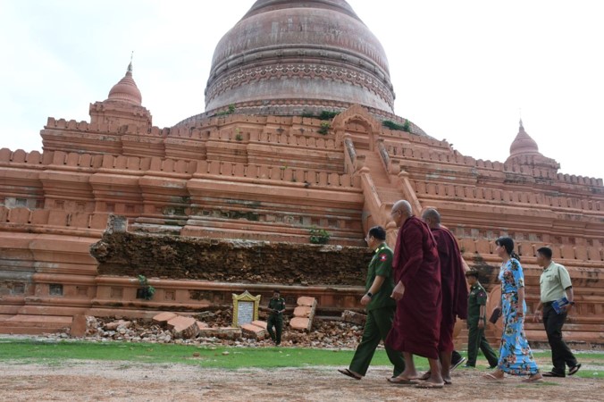 အလားတူ ကာကွယ်ရေးဦးစီးချုပ်ရုံး (ကြည်း) မှ ဒုတိယဗိုလ်ချုပ်ကြီး မျိုးမိုးအောင်နှင့် တာဝန်ရှိသူများသည် မန္တလေးတိုင်းဒေသကြီး၊ တံတားဦးမြို့၊ အမှတ် (၃) ရပ်ကွက်ရှိ သမိုင်းဝင်ဆုတောင်းပြည့် ပေါင်းလဲကြီး (မဟာရွှေသာလျှောင်း) မြတ်စွာဘုရားနှင့် နဂါးရုံဘုရားတို့၌ ငလျင်ဒဏ်ကြောင့် ထိခိုက်ပျက်စီးခဲ့သော အပျက်အစီးများအား ဖယ်ရှားရှင်းလင်းပြီးစီးမှု၊ ရှေးဟောင်းစေတီအပျက်အစီးများအား ဖယ်ရှားရှင်းလင်းရာမှ ရှာဖွေတွေ့ရှိရသော ဌာပနာတော်များ ထိန်းသိမ်းထားရှိမှုတို့ကို သွားရောက်ကြည့်ရှု၍ အလှူငွေပေးအပ်လှူဒါန်းကာ လိုအပ်သည်များ ပေါင်းစပ်ညှိနှိုင်းဆောင်ရွက်ပေးသည်။