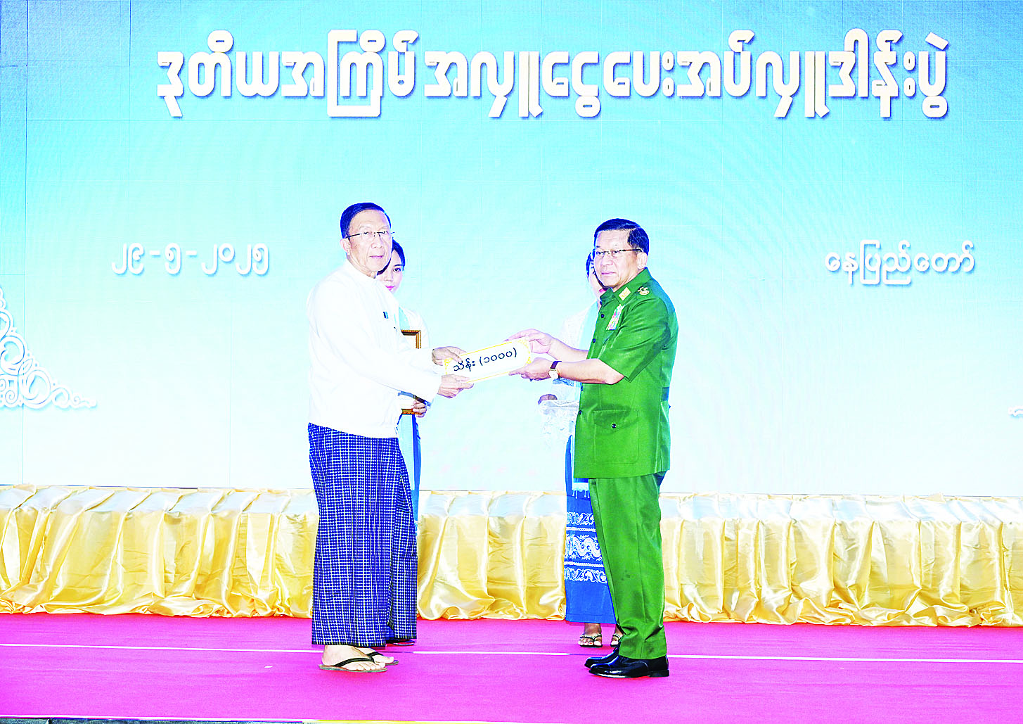 ဆက်လက်ပြီး စေတနာရှင်အလှူရှင်များ၊ တိုင်းဒေသကြီးနှင့် ပြည်နယ်အစိုးရအဖွဲ့များ၊ ဝန်ကြီးဌာနများ၊ အဖွဲ့အစည်းများက အလှူငွေများ ဆက်လက်ပေးအပ်လှူဒါန်းကြရာ အမျိုးသားသဘာဝဘေးအန္တရာယ်ဆိုင်ရာစီမံခန့်ခွဲမှုကော်မတီဥက္ကဋ္ဌ၊ နိုင်ငံတော်စီမံအုပ်ချုပ်ရေးကောင်စီဒုတိယဥက္ကဋ္ဌ ဒုတိယဝန်ကြီးချုပ် ဒုတိယဗိုလ်ချုပ်မှူးကြီး စိုးဝင်း၊ ကောင်စီတွဲဖက်အတွင်းရေးမှူး ဗိုလ်ချုပ်ကြီး ရဲဝင်းဦးနှင့် ကောင်စီဝင်များက အသီးသီးလက်ခံရယူပြီး ဂုဏ်ပြုမှတ်တမ်းလွှာများ ပြန်လည်ပေးအပ်ခဲ့ကြသည်။