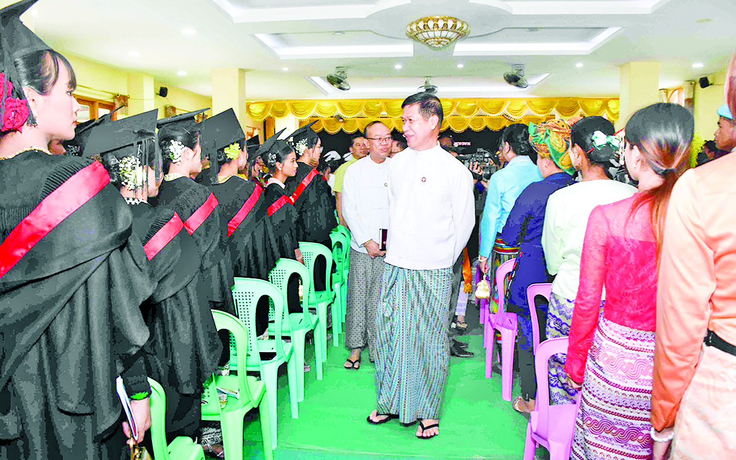 ဦးစွာတိုင်းဒေသကြီးဝန်ကြီးချုပ်က နိုင်ငံတော်က ကျန်းမာရေးလူ့စွမ်းအားအရင်းအမြစ် ဖွံ့ဖြိုး တိုးတက်ရေးနှင့် အရည်အသွေးပြည့်ဝသော သားဖွားဆရာမများ မွေးထုတ်ပေးနိုင်ရေး အလေးထား စီမံဆောင်ရွက်ပေးနေပါကြောင်း၊ စာနာမှုနှင့် ကရုဏာ တရားအပြည့်ထားကာ ကျွမ်းကျင်ပိုင်နိုင်စွာပြုစုပေးနိုင်သည့် ပြည်သူလူထုက အားကိုးယုံကြည်ထိုက်သော အရည်အသွေး၊ အရည်အချင်းရှိသော နိုင်ငံ့ဝန်ထမ်း ဘက်စုံသားဖွားဆရာမကောင်းများ ဖြစ်အောင် အစဉ်တစိုက် ကြိုးစားနေကြရမည်ဖြစ်ပါကြောင်း ပြောကြားသည်။