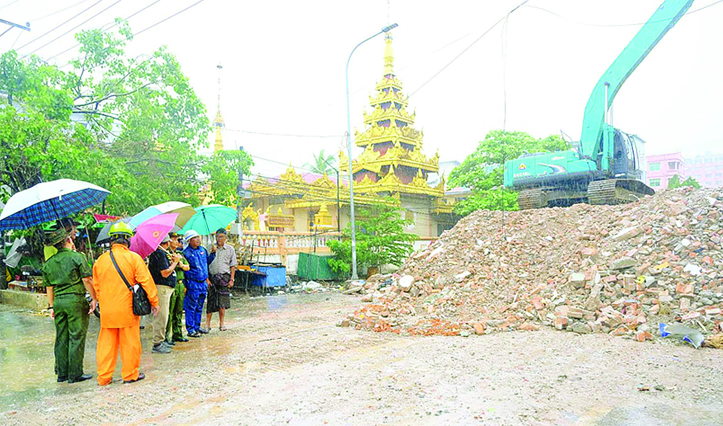 ထို့အတူ ကာကွယ်ရေးဦးစီးချုပ်ရုံး(ကြည်း)မှ ဒုတိယဗိုလ်ချုပ်ကြီးစိုးတင့်နိုင်နှင့် တာဝန်ရှိသူ များသည် မန္တလေးမြို့ အောင်မြေသာစံမြို့နယ်နှင့် အမရပူရမြို့နယ်တို့ရှိ ဘုရားစေတီများရှိ ငလျင်ဒဏ်သင့်၍ ပြိုကျပျက်စီးခဲ့သည့် အပျက်အစီးများအား ဖယ်ရှားရှင်းလင်းနေမှုနှင့် ပြန်လည်တည်ဆောက်ရေး ဆောင်ရွက်နေမှု၊ ချမ်းအေးသာစံမြို့နယ်ရှိ ငလျင်ဒဏ်ကြောင့် ထိခိုက်ပျက်စီး ခဲ့သော အန္တရာယ်ရှိ လူနေ အဆောက်အအုံများအားဖြိုချပြီး အပျက်အစီးများ အပြီးသတ်ရှင်းလင်းနေမှု၊ ဖြိုချဖျက်ဆီးဆဲ အန္တရာယ်ရှိအဆောက်အအုံများ၌ စက်ယန္တရားကြီးများအသုံးပြု၍ အင်တိုက်အားတိုက် ရှင်းလင်းရေး ဆောင်ရွက်နေမှု၊ အများပြည်သူအသုံးပြုမှုများသည့် လမ်းမကြီးများ၌ လမ်းပိတ်ဆို့မှုမဖြစ်ပေါ်စေရေးနှင့် အန္တရာယ်ကင်းစွာ သွားလာနိုင်ရေးတို့ကို လိုက်လံကြည့်ရှုစစ်ဆေး၍ လိုအပ်သည်များ ပေါင်းစပ်ညှိနှိုင်း ဆောင်ရွက်ပေးသည်။