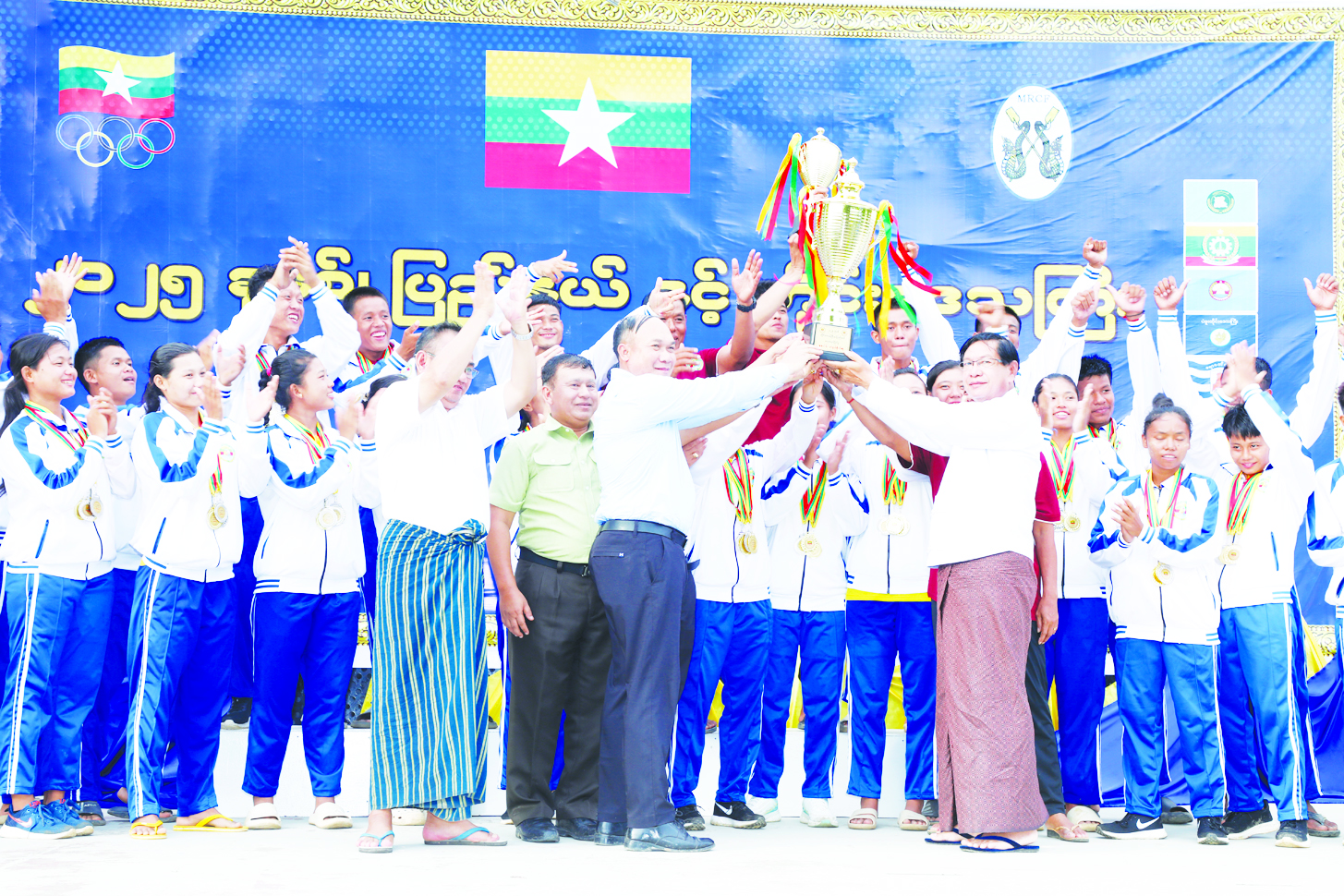 ထို့နောက် ဒုတိယဝန်ကြီး ဦးထိန်လင်းက အမျိုးသမီးတံခွန်စိုက်ဆုရရှိသွားသော ရန်ကုန်တိုင်းဒေသကြီး အသင်းအား တံခွန်စိုက်ဆုဖလားကိုလည်းကောင်း၊ ရန်ကုန်တိုင်းစစ်ဌာနချုပ် တိုင်းမှူး ဗိုလ်ချုပ် ပြည့်စုံလင်းက အမျိုးသားတံခွန်စိုက်ဆုရရှိသွားသော ဧရာဝတီတိုင်းဒေသကြီး အသင်းအား တံခွန်စိုက်ဆုဖလားကိုလည်းကောင်း၊ ရန်ကုန်တိုင်းဒေသကြီး ဝန်ကြီးချုပ် ဦးစိုးသိန်းက စုပေါင်းတံခွန်စိုက်ဆု ရရှိသွားသော ဧရာဝတီတိုင်းဒေသကြီးအသင်းအား တံခွန်စိုက်ဆုဖလားကို ပေးအပ်ချီးမြှင့်ခဲ့ကြောင်း သိရသည်။