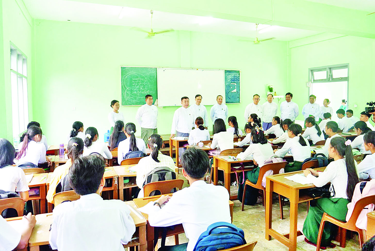 ပြည်ထောင်စုဝန်ကြီး ဒေါက်တာညွန့်ဖေ ကျောင်းသား ကျောင်းသူများ အေးချမ်းစွာပညာသင်ကြားနေမှု လှည့်လည်ကြည့်ရှုအားပေး
