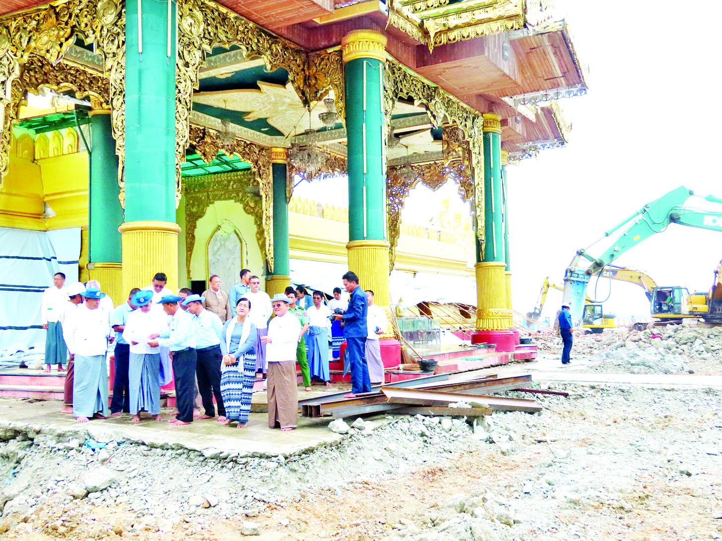 ထို့နောက် ပြည်ထောင်စုဝန်ကြီးသည် တာဝန်ရှိသူများနှင့်အတူ မန္တလေးငလျင်ကြီးကြောင့် ဥပ္ပါတသန္တိစေတီတော်မြတ်ကြီး ပင်မစေတီတော်၊ ရင်ပြင်တော်၊ ပစ္စယာနှင့် ပရိဝုဏ် ထိခိုက်ပျက်စီးခဲ့မှုများကို စက်ယန္တရားများအသုံးပြု၍ ပြုပြင်မွမ်းမံရေးလုပ်ငန်းများဆောင်ရွက်နေမှုကို ကြည့်ရှုစစ်ဆေးပြီး ဥပ္ပါတသန္တိစေတီတော် ပြုပြင်မွမ်းမံရေးလုပ်ငန်းများတွင် လုပ်အားဒါန ကုသိုလ်ပြုကြသည့် ကြည်း၊ ရေ၊ လေ တပ်မတော်သားများနှင့် မြန်မာနိုင်ငံရဲတပ်ဖွဲ့ဝင်များအတွက် ငွေကျပ် ၃၇၀၈၇၀၀ လှူဒါန်းသည်။
