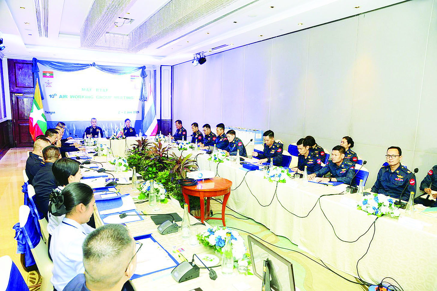 မြန်မာနိုင်ငံက အိမ်ရှင်အဖြစ် လက်ခံကျင်းပသည့် (၁၀) ကြိမ်မြောက် မြန်မာ-ထိုင်း နှစ်နိုင်ငံ လေတပ်ချင်းတွေ့ဆုံဆွေးနွေးပွဲ (10th MAF-RTAF Air Working Group Meeting)ကို ဇွန် ၃ ရက် နံနက်ပိုင်းတွင် ရန်ကုန်မြို့ရှိ Chatrium Hotel ၌ ကျင်းပပြုလုပ်ရာ တပ်မတော် (လေ) မှ စစ်ဦးစီးအရာရှိချုပ် (လေ) ဒုတိယဗိုလ်ချုပ်ကြီး ဇော်ဝင်းမြင့် ဦးဆောင်သော ကိုယ်စားလှယ်အဖွဲ့ဝင်များ၊ ထိုင်းဘုရင့် လေတပ်မှ Air Marshal Anurak Romnarak ဦးဆောင်သော ကိုယ်စားလှယ်အဖွဲ့ဝင်များ၊ မြန်မာနိုင်ငံဆိုင်ရာ ထိုင်းဘုရင့်လေတပ်စစ်သံမှူးနှင့် တာဝန်ရှိသူများ တက်ရောက်ကြသည်။