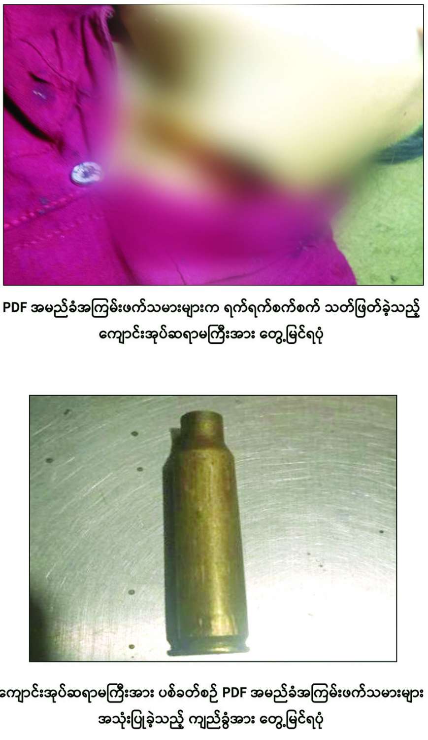 ထိုသို့ နိုင်ငံ့ဝန်ထမ်းကောင်း ဆရာ ဆရာမများအား PDF အမည်ခံ အကြမ်းဖက်သမားများ နှင့် အကြမ်းဖက်အဖွဲ့အစည်းများ၏ ခြိမ်းခြောက်မှုများ၊ အကြောင်းအမျိုးမျိုးပြ၍ ဖမ်းဆီးခေါ်ဆောင် သတ်ဖြတ်မှုများကို ပြည်သူလူထုက စိတ်နှလုံးမချမ်းမြေ့ဖွယ် တွေ့မြင်ကြားသိနေရသဖြင့် အကြမ်းဖက်သမားများ၏ လုပ်ရပ်များကို လုံးဝလက်ခံနိုင်ခြင်းမရှိဘဲ ကန့်ကွက်ရှုတ်ချလျက်ရှိကြောင်းနှင့် လုံခြုံရေးတပ်ဖွဲ့ဝင်များကလည်း လိုအပ်သော တုံ့ပြန်မှုများ ဆောင်ရွက်နိုင်ရန်အတွက် လုံခြုံရေးလုပ်ငန်းစဉ်များကို တိုးမြှင့်ဆောင်ရွက်လျက်ရှိကြောင်း သတင်းရရှိသည်။