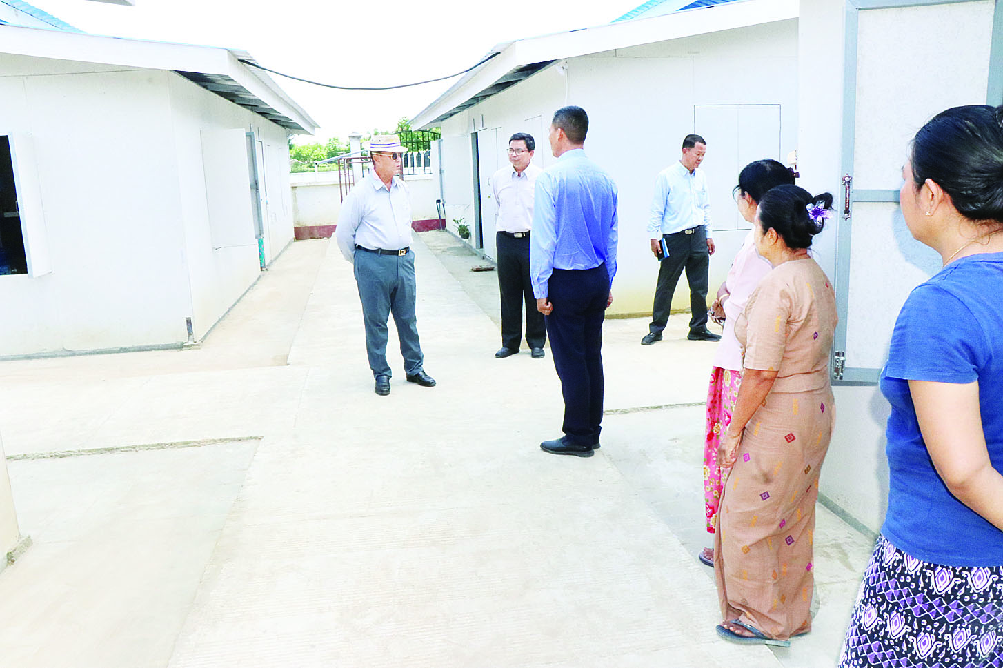 ယင်းနောက် Prefabricated Modular House များ တပ်ဆင်ဆောင်ရွက်နေမှု၊ ကျေးလက်လမ်းဖွံ့ဖြိုးရေးဦးစီးဌာနက ယာယီလိုင်းခန်းများအတွင်း ကျောက်ချောလမ်းခင်းခြင်း ဆောင်ရွက်နေမှုနှင့် ရေ၊ မီး၊ မိလ္လာစနစ်များ တပ်ဆင်ဆောင်ရွက်ထားရှိမှုအခြေအနေများကို ကြည့်ရှုစစ်ဆေးပြီး Prefabricated Modular House တပ်ဆင်မှုများ အမြန်ဆုံးပြီးစီးအောင် ဆောင်ရွက်သွားရန်နှင့် ဆောင်ရွက် ပြီးစီးပါက ဝန်ထမ်းများကို စနစ်တကျ အမြန်ဆုံးနေရာချထား ဆောင်ရွက်သွားရန် ဆွေးနွေးမှာကြား သည်။
