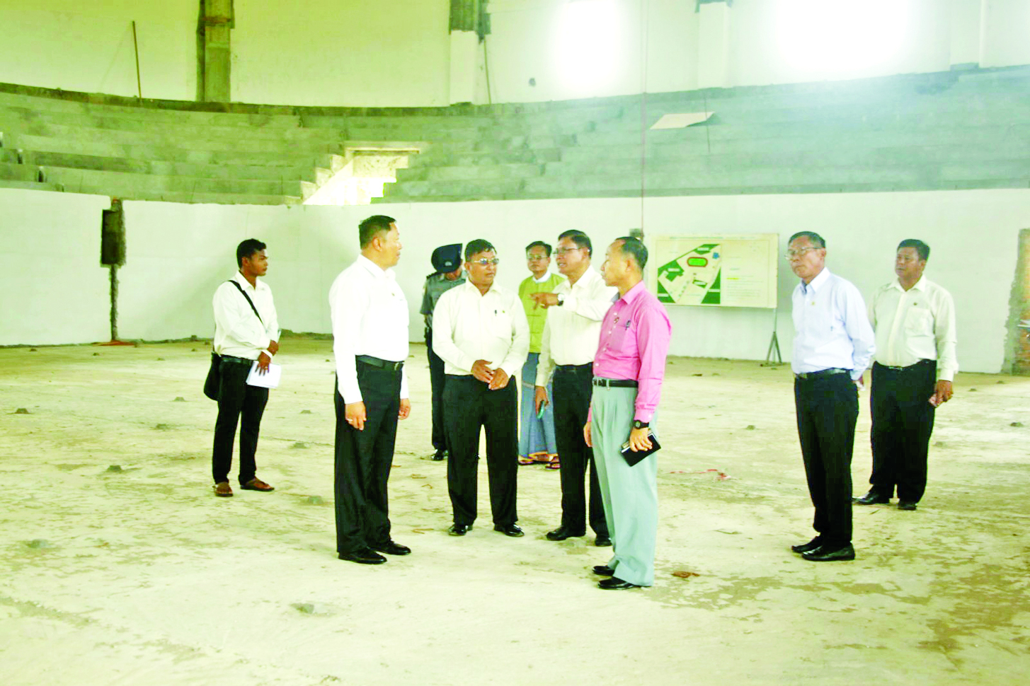အားကစားနှင့်လူငယ်ရေးရာဝန်ကြီးဌာန ဒုတိယဝန်ကြီး ဦးဇင်မင်းထက်သည် မွန်ပြည်နယ် လူမှုရေးရာဝန်ကြီး ဦးစောကြည်နိုင်၊ တာဝန်ရှိသူများနှင့်အတူ ယနေ့မွန်းလွဲပိုင်းတွင် မွန်ပြည်နယ် အားကစားဥယျာဉ်အတွင်းရှိ တည်ဆောက်လျက်ရှိသော ဘက်စုံသုံးမိုးလုံလေလုံအားကစားခန်းမကို ကြည့်ရှုစစ်ဆေးပြီး လိုအပ်သည်များ မှာကြားသည်။