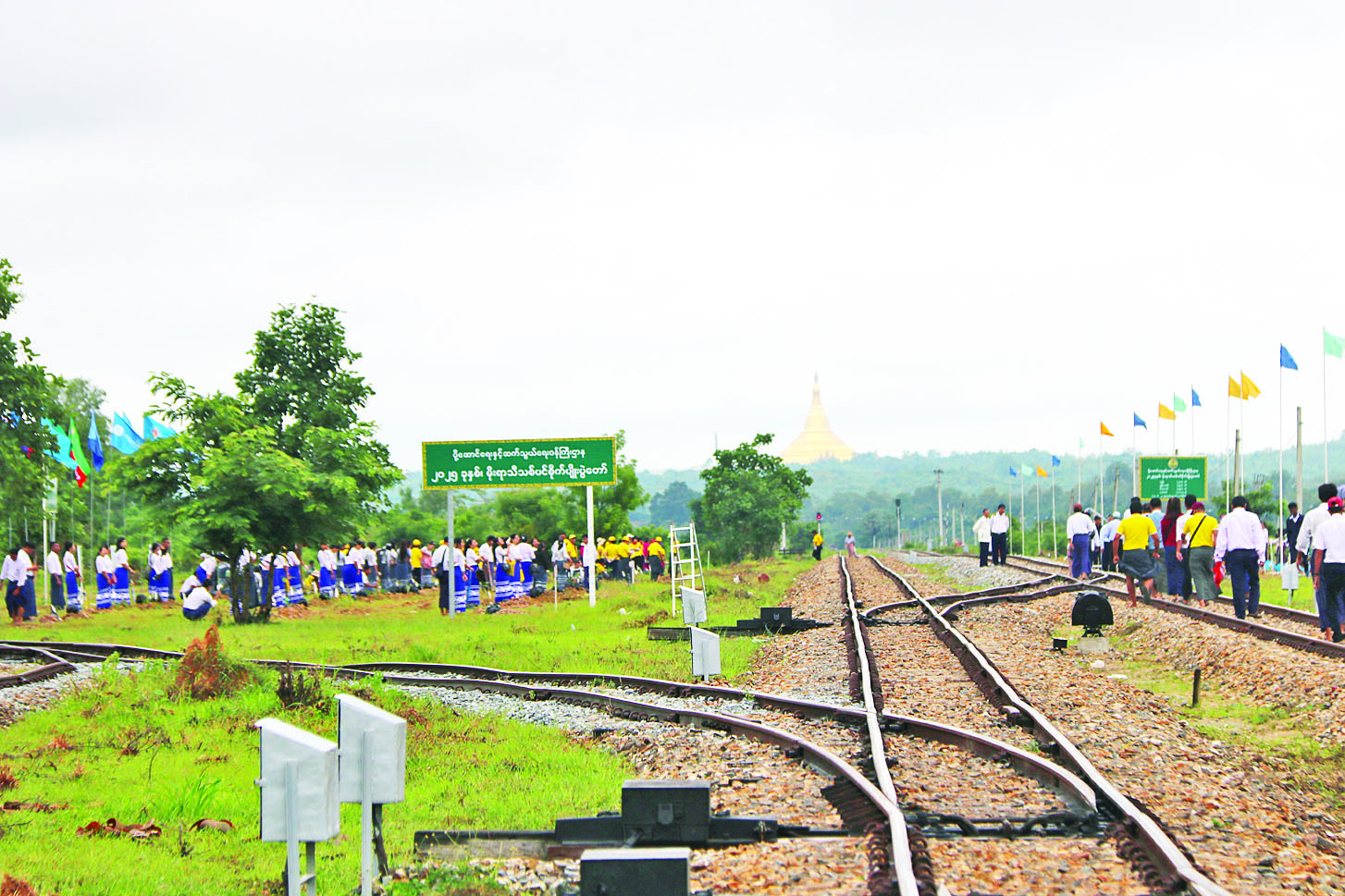 ဦးစွာ ပထမစိုက်ကွက်နေရာ၌ ဒုတိယဝန်ကြီးချုပ်နှင့် ပြည်ထောင်စုဝန်ကြီးနှင့် ဇနီးတို့က ဦးဆောင်ပြီး အခမ်းအနားသို့ တက်ရောက်လာကြသူများနှင့်အတူ ရထားလမ်းဘေးတစ်လျှောက်တွင် အရိပ်ရလေကာ ပင်များစိုက်ပျိုးကြပြီး ဝန်ထမ်းများ သစ်ပင်စိုက်ပျိုးနေမှုများကိုလိုက်လံကြည့်ရှုအားပေးသည်။